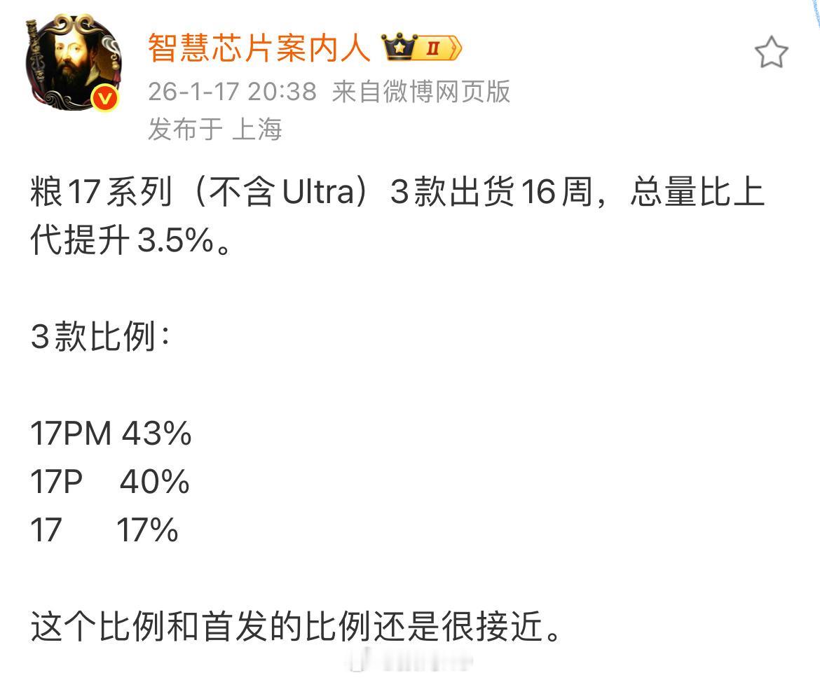 小米17的全系销量来到了307.55万,这么看小米17Pro、ProMax占比是真高,高达83%。