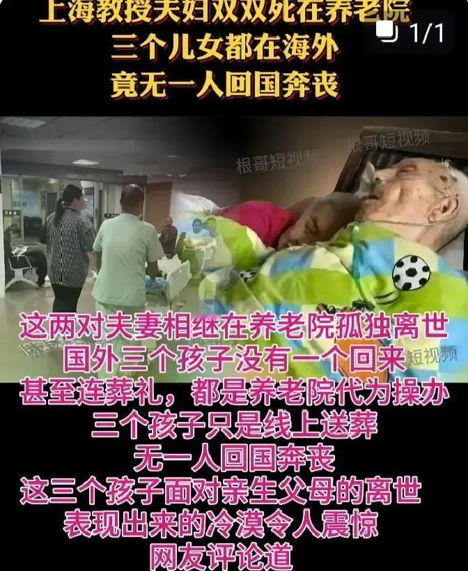 太寒心!上海一对在院养老的老教授夫妻相继离世,三个身在海外的儿女无人回国奔丧,把后事全权委托养老院代办,只提出全程拍照、录像发给他们查验,葬礼走最简流程,尽快结束。 在上海,有一对年过八旬的老教授夫妇在养老院的高墙内相继离世。尽管他们膝下育有三名定居海外的子女,但在生命的终章,却无一人回国奔丧。这一场身后事,完全成了子女们通过微信群进行的“云端验收”。他们要求养老院全程拍照、录像以供查验,并将葬礼流程压缩至极简。 工作人员只得拿着手机环绕遗体拍摄、直播火化过程,最终将海量的现场照片倾倒进群聊。这场没有任何血亲出席的告别仪式,冷清得让人不知该将同情心投向何处。 老爷子因基础疾病突发离世的那晚,养老院连夜拨通了三通越洋电话。据悉,彼时身在纽约的大儿子正忙于手术,多伦多的二女儿面临出庭,而悉尼的小儿子正在赶项目的最后期限。 尽管身处不同时区,三人的回复却令人心惊地一致:“工作走不开,全权委托院方,记得拍照存档。”仅在一周之后,老太太也撒手人寰。这一次,子女们甚至省去了通话的环节,直接在线签署了相关委托书。 他们在委托中提出了冷冰冰的硬性要求:举行最普通的告别仪式,免去挽联,流程越快结束越好,但必须建立专属微信群,每一个步骤都必须留有影像记录。于是,荒诞的一幕上演了——穿戴寿衣要拍特写、摆放白菊要拍全景、播放评弹要做视频记录。 工作人员举着手机进行360度环绕拍摄,只为让屏幕另一端的子女们完成“云瞻仰”。灵堂之内,仅有护理员和几位熟识的老人,伴着老教授生前钟爱的评弹旋律,仿佛在完成一场没有观众的演出。 火化当日,就连遗体被推入炉膛的画面都被收录进了镜头。微信群里最终堆积了数千张照片和几十段视频。子女们在群里回复道:“辛苦了,让爸妈走得体面”,却始终未曾提及哪怕一句关于预订机票的话语。 这种将“尽孝”职责外包给机构、将“在场”替换为“在线”的精准操作,理智得让人感到彻骨寒意。二老生前的微信朋友圈,呈现出的却是截然不同的繁华景象。 那里展示着孙辈在纽约中央公园野餐的欢愉、在多伦多枫叶季的全家福、在悉尼歌剧院前的打卡留念。每一条动态下都配着自豪的文案:“我家孩子真争气。” 然而护理员透露,老太太私下里常对着手机屏幕发呆,有次更是喃喃自语:“小孙子都上中学了,我连他声音都记不清了。” 每逢佳节,子女们的视频电话总是准时打来。镜头里永远是明亮的客厅背景和礼貌性的寒暄,可一旦挂断,老人的房间便瞬间重归死寂。 这种“定期汇报式”的关怀,像极了企业的季度总结会——流程标准、态度客气,唯独缺失了那份温热的人情味。 更为残忍的是,老太太走得如此仓促,极有可能是因为听到了“子女不回来”的确切消息后,最后支撑她的那口气彻底散了。 她耗尽半生心血培养出三位世俗意义上的“成功人士”,却在人生最需要陪伴的时刻,等来的一纸《丧葬事宜委托书》。 这种巨大的反差,比任何言语上的控诉都更具杀伤力。 虽然没有具体的统计数据,但在上海的养老行业中,这种“远程丧礼”的出现频率正变得不再罕见。 这背后折射出的,是时代洪流中“孝道”观念的集体失语——当子女的成功被定义为远走高飞,父母的晚年便注定成为那个被“优化”掉的变量。 有人辩解这是海外子女的无奈,签证、航班以及时间成本确实高昂。但老爷子从发病到离世经历了数天,老太太从情绪崩溃到去世也有一周的时间,这些时间窗口足以支持他们从地球的任何角落飞回上海。 真正的阻碍或许并非物理距离,而是那些早已在内心完成的利益核算——请假带来的损失、客户流失的风险、项目延误的代价,在他们心中,最终都压过了“见最后一面”的重量。 如今,老教授夫妇的骨灰盒仍寄存在养老院内。子女们正在群里商讨究竟是选择海葬、就地安放还是寄往海外。 这场关于“如何处置父母身后事”的线上会议,像极了在处理一件历史遗留问题。 那些举着手机拍摄了海量照片的工作人员,大概永远无法理解,为何有人宁愿接收一场4K画质的葬礼直播,也不愿亲手为父母盖上最后一块白布。 参考信息:澎湃新闻. (2025, 12). 上海八旬老教授夫妻相继离世,海外子女远程委托养老院办后事