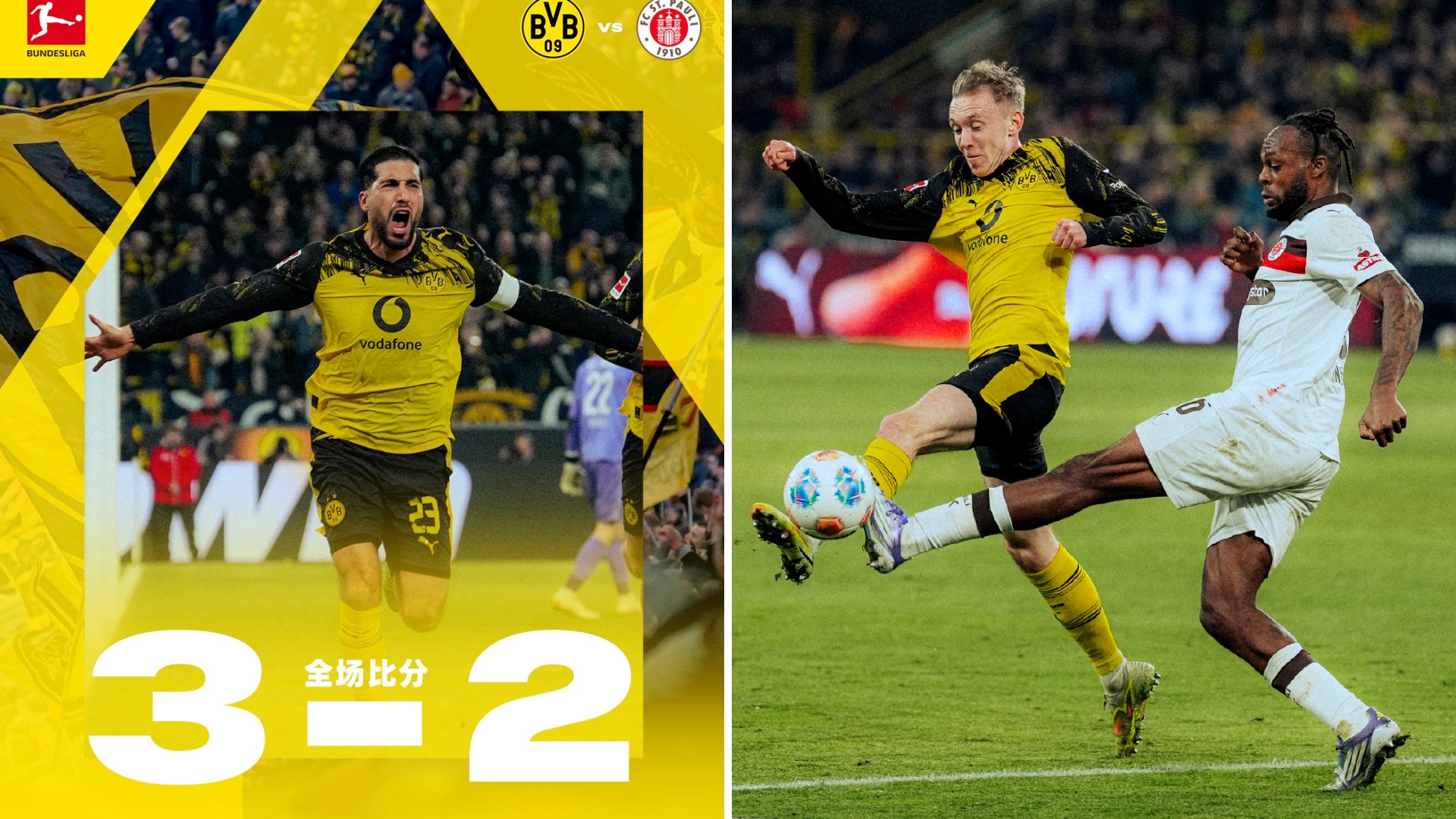 德甲:多特蒙德主场3-2绝杀圣保利,39分排名积分榜第二位。 布兰特破门打破僵局,阿德耶米1传1射,詹95分钟点射绝杀。