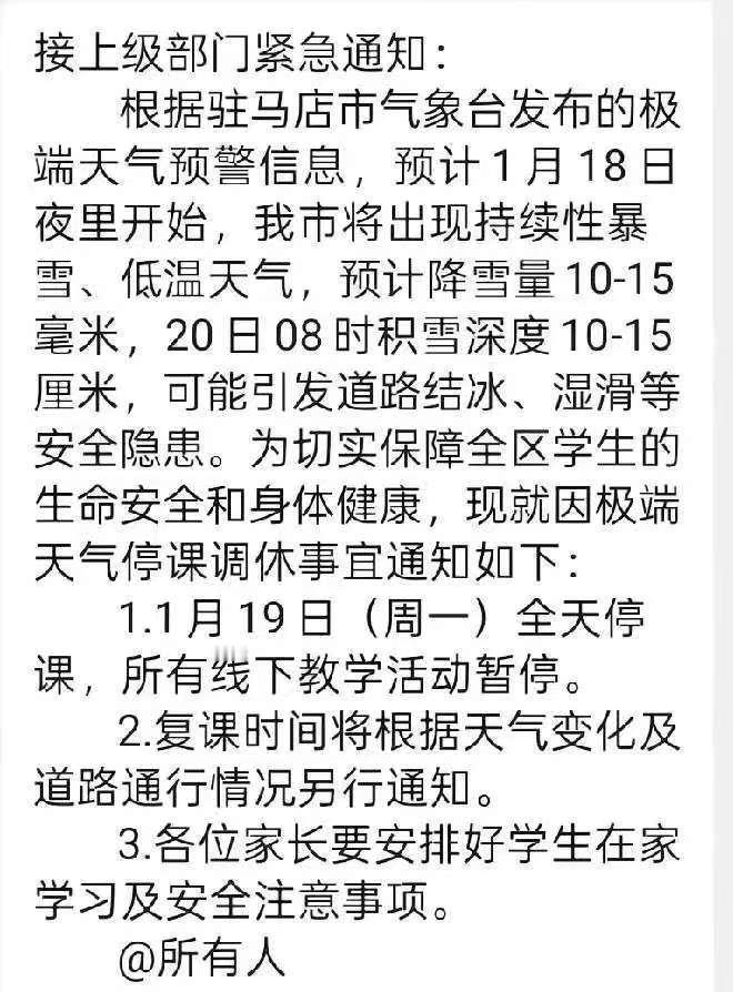 河南要下大到暴雪,普遍降温10到20°。大范围降雪集中在18日——20日;极寒天气将出现在20——23日。 河南这波寒潮真的不能掉以轻心!大到暴雪叠加10-20℃的断崖式降温,直接惊动中央,国家防灾减灾救灾委工作组已赶赴河南指导防减灾救灾工作,足见这次天气过程的特殊性。 河南是人口大省也是产粮大省,极端天气不仅影响家家户户的出行安全,还关乎粮食生产安全,半点马虎不得。根据预报,18-20号是大范围降雪集中时段,全省多地都会出现明显降雪;20-23号极寒天气上线,气温跌到谷底,洛阳的气温降幅达到10-20℃,山区最低温更是会降到-20℃,就连白天的最高温也会维持在0℃以下,这种寒冷天气在河南并不常见。 面对来势汹汹的寒潮,各地已经迅速做出安排。学校可以视情况停课调课一天,保障学生安全;河南省疾控局和气象局联合发布低温健康风险提示;针对户外作业人群,要求合理安排作业时间,掌握冻伤复温应急处置措施,配备便携取暖物品,穿戴好防寒防水工作服和防滑鞋。 咱普通人更要把防护措施落实到位。赶紧囤好几天的食材和生活必需品,减少不必要的出门;老人、孩子和孕妇尽量不要外出,在家做好防寒保暖;慢病患者要备足常用药和急救药,密切关注身体变化;上班上学的朋友,路上务必放慢脚步,注意防滑防摔。 关键时刻,有国家的指导和保障,咱自己做好防护,就是对自己和家人负责。