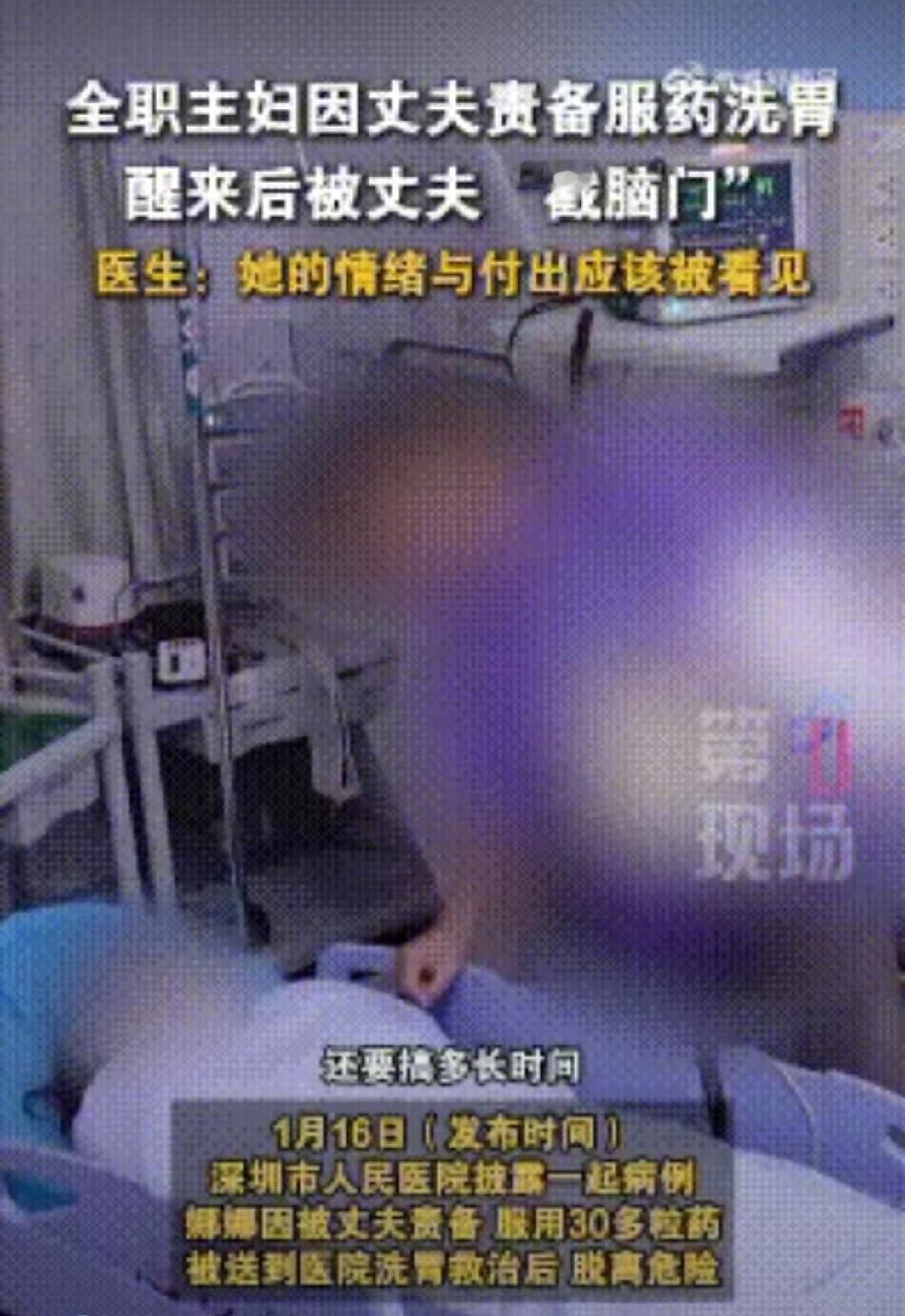 近日深圳,一名女子因被丈夫责备,服下了30多粒安眠药,可洗胃脱险后,这丈夫不但没