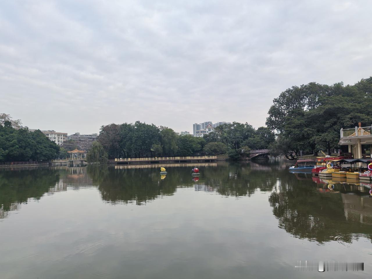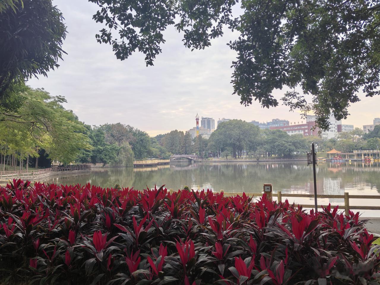 四九第二天,也是我来茂名的第三天。早餐过后,我去茂名新湖公园逛了逛。好家伙,晨练的人多得不得了。有迈着大步健走的,有挥舞球拍打羽毛球的,还有跟着音乐翩翩起舞、扯着嗓子放声高歌的,热闹非凡。 这座公园于1987年建成,面积达22.26公顷,仅水域面积就有10.13公顷。园内大片绿地,树木葱茏,植物种类极为丰富。东区是景观区,有超大型的假山水池和雕塑,看上去十分气派。还有一片湖区,湖中有两座岛,分别是北岛和浮丘。浮丘上的“探胜”园中园,园林小品形式各异,环境高雅清幽。这里着实是市民游玩、健身、休闲的宝藏之地!