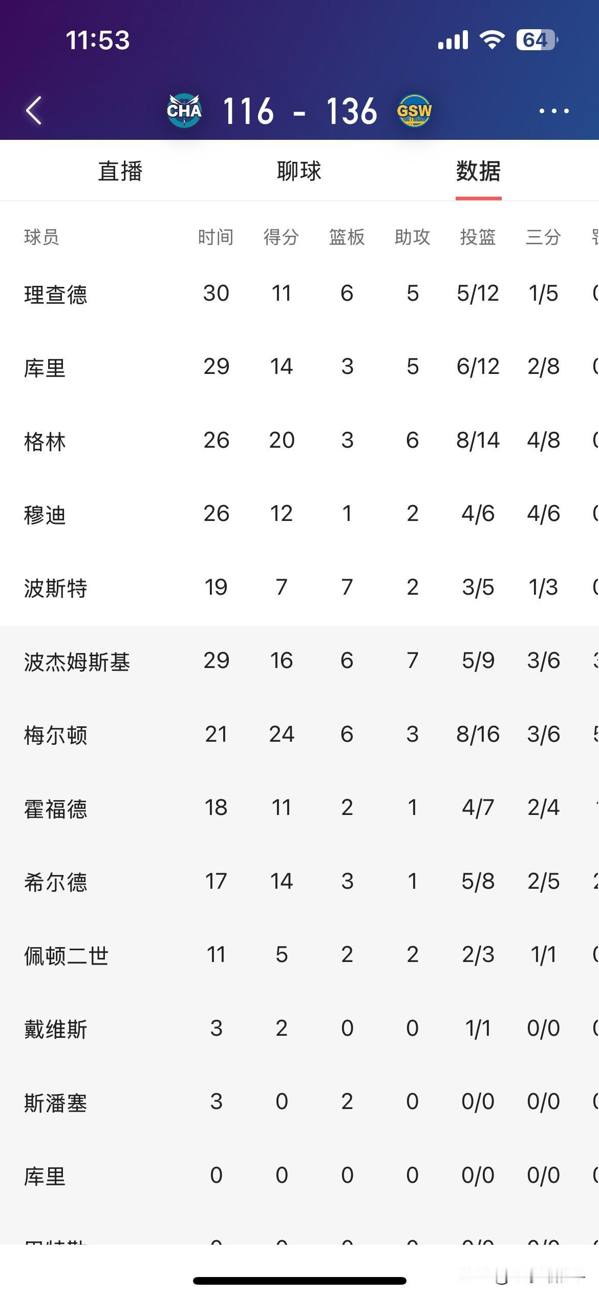 格林拿20分,勇士八人得分上双拿下黄蜂,不得不承认的一点就是底薪梅尔顿真香,这火力输出相当猛,真的是香得不行。 梅尔顿在场上那叫一个积极,进攻端各种得分手段都有,三分线外,他抬手就有,好几记三分直接把黄蜂的防守阵型打乱,突破的时候,速度快,还能巧妙地避开对手的阻拦完成得分。防守端也不含糊,积极地去干扰对手,让黄蜂球员的进攻打得很不顺畅。 花着底薪,却打出了巨星的表现,勇士这波签约血赚啊,梅尔顿就是球队的宝藏球员。