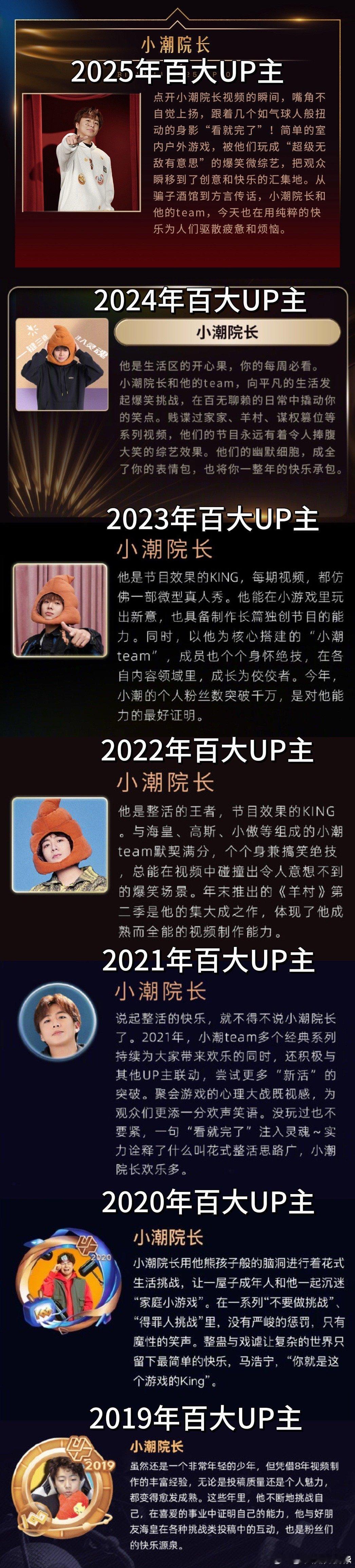 小潮院长连续7年获百大UP主 小潮院长七连百大太牛了!带着小潮team勇闯“疯人院”,玩转出圈名梗与高能挑战,2026年还更新《羊村5》、尝试混曲创作,创意永不枯竭,不愧是整活天花板~