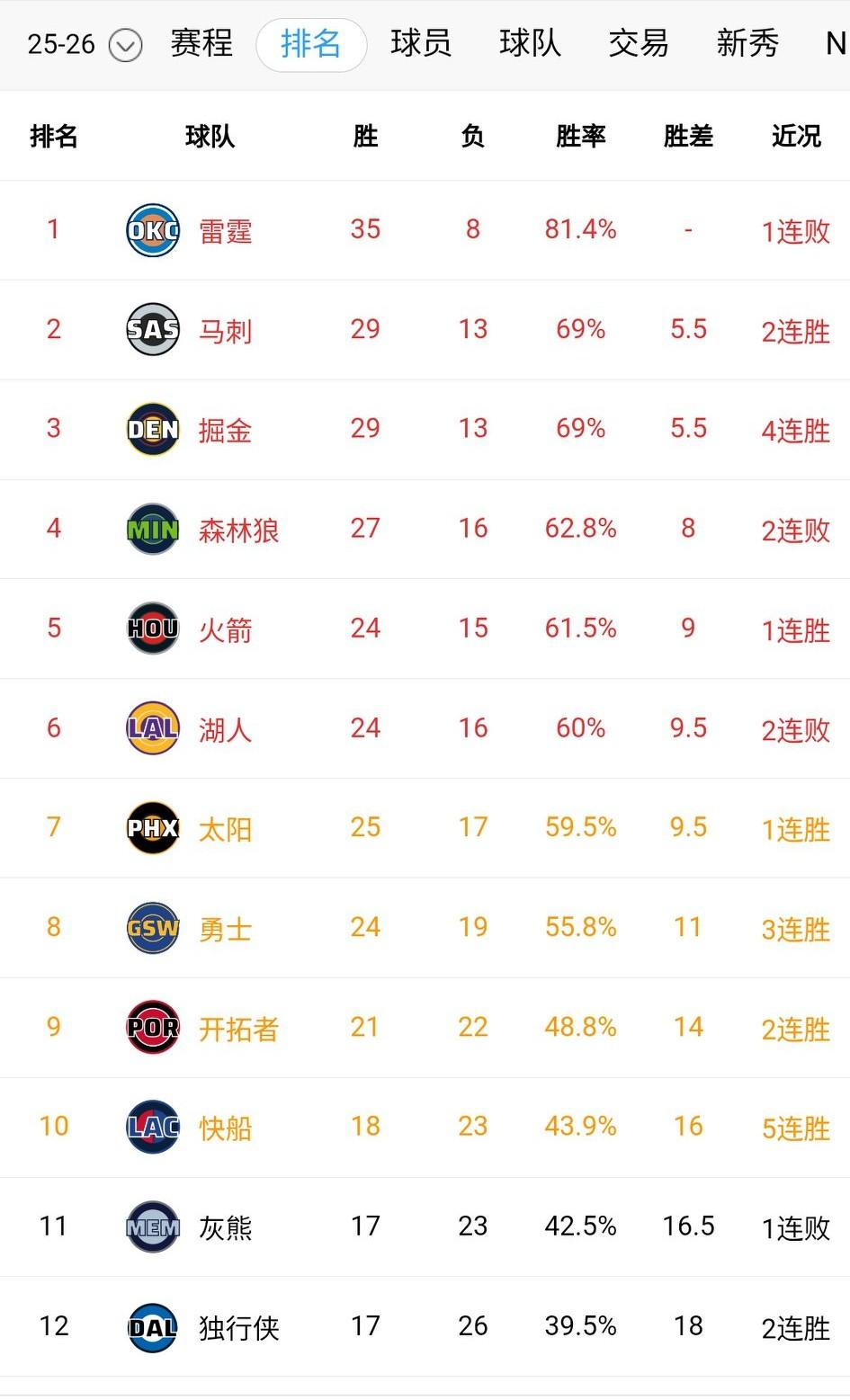 西部又卷起来啦!雷霆又输了,当年勇士的纪录是跑不了啦。 湖人2连败,胜场差已追平附加赛区,随时掉入附加赛区。 勇士三连胜稳居第八,距离季后赛仅1.5个胜场差,冲击季后赛席位希望大增。 掘金马刺不分伯仲,它们要争第二,季后赛才能避开雷霆。 森林狼输球,距离西部前三差距越来越大。 开拓者赢球似乎跟杨瀚森无关,今天大胜湖人,杨瀚森才打了3分钟垃圾时间,没有得分。