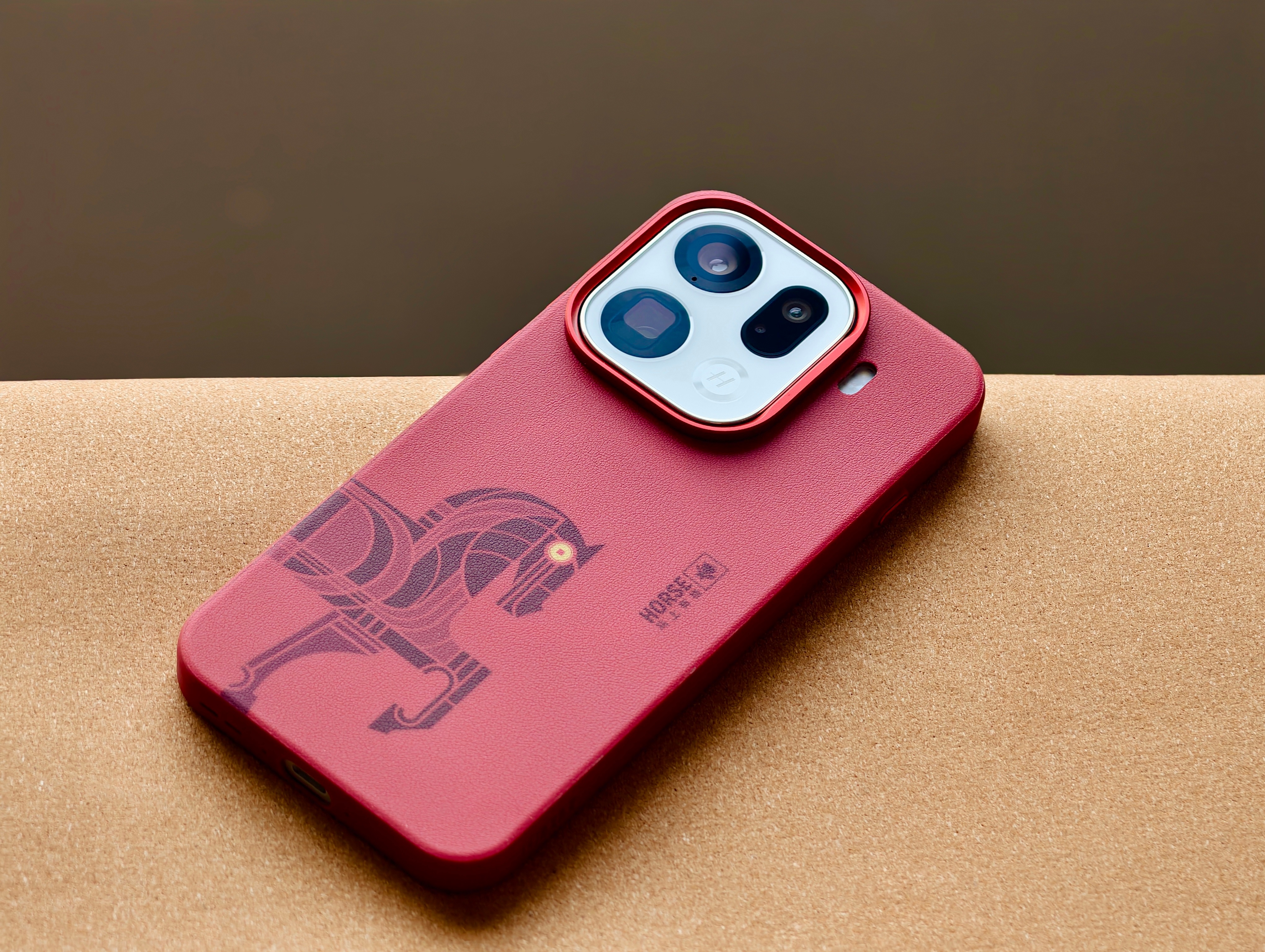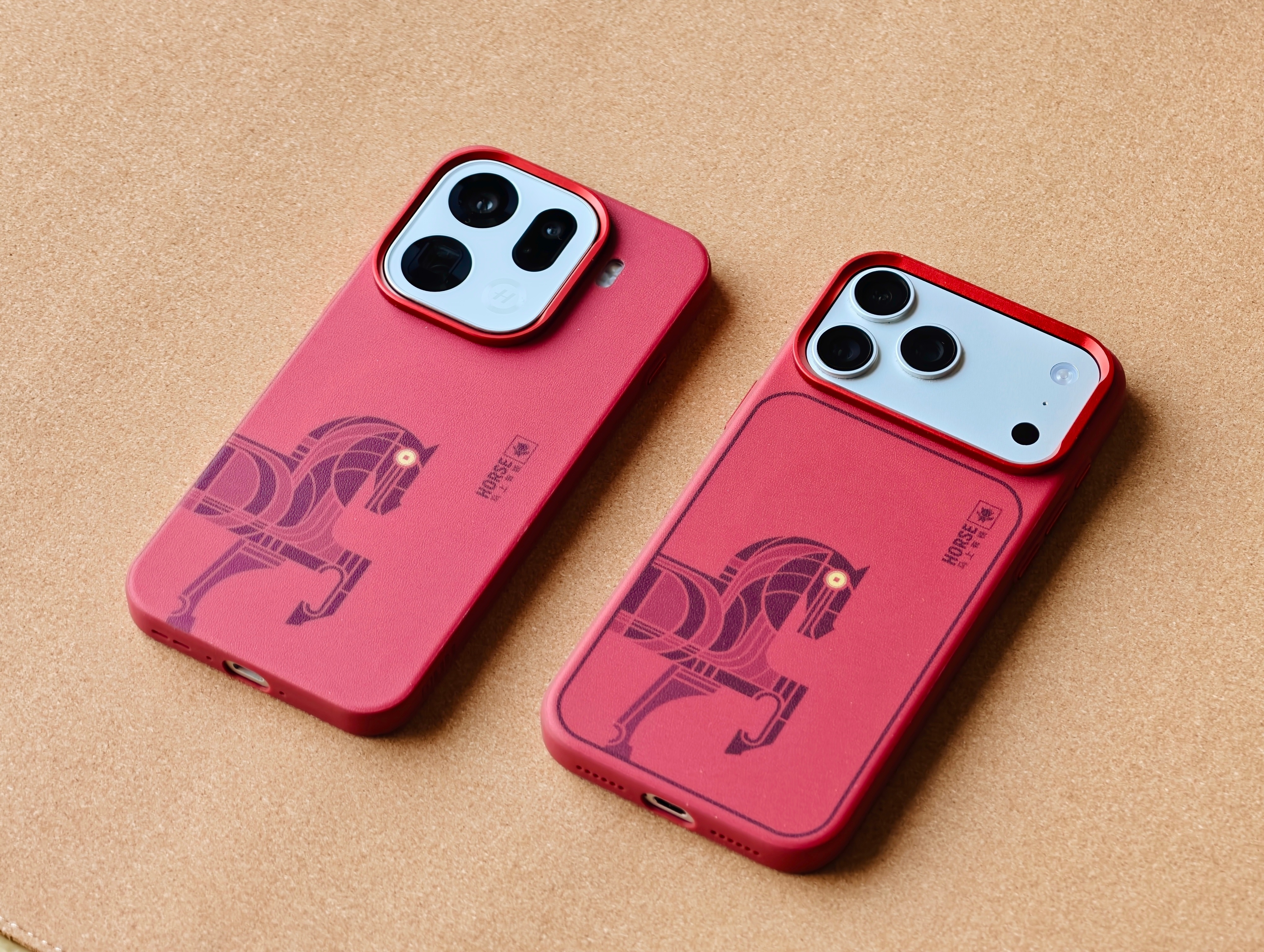 嘿嘿,用上了,趣装备家的「鸿马」手机壳。搞了两个,一个OPPO Find X9 Pro、一个iPhone 17 Pro Max的。整点红套,冲冲霉运,新的一年,要红起来