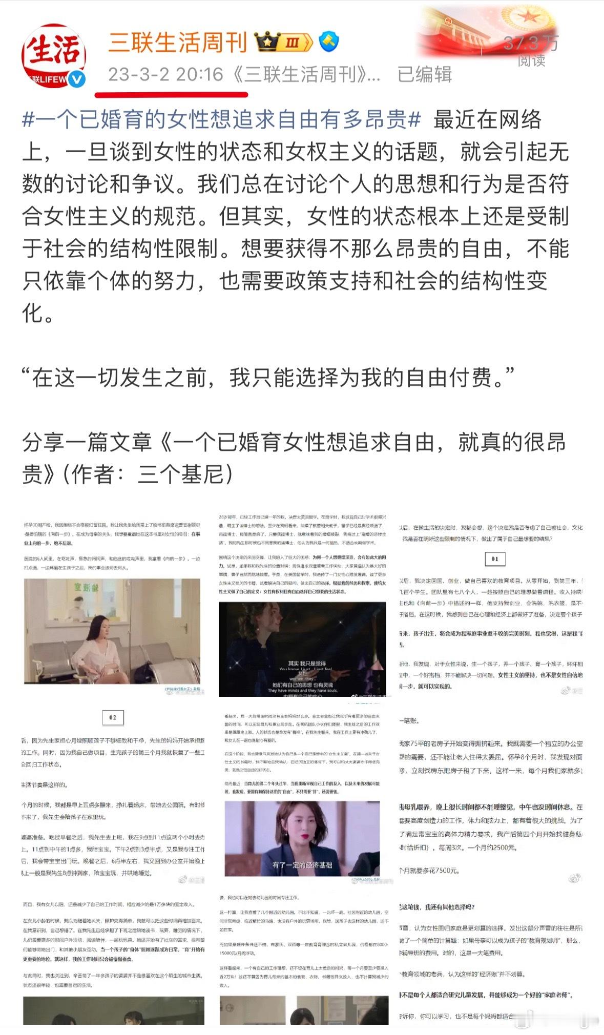 已婚育女性想追求自由真的很昂贵果然,又是三年前的文章,翻出来再发一遍