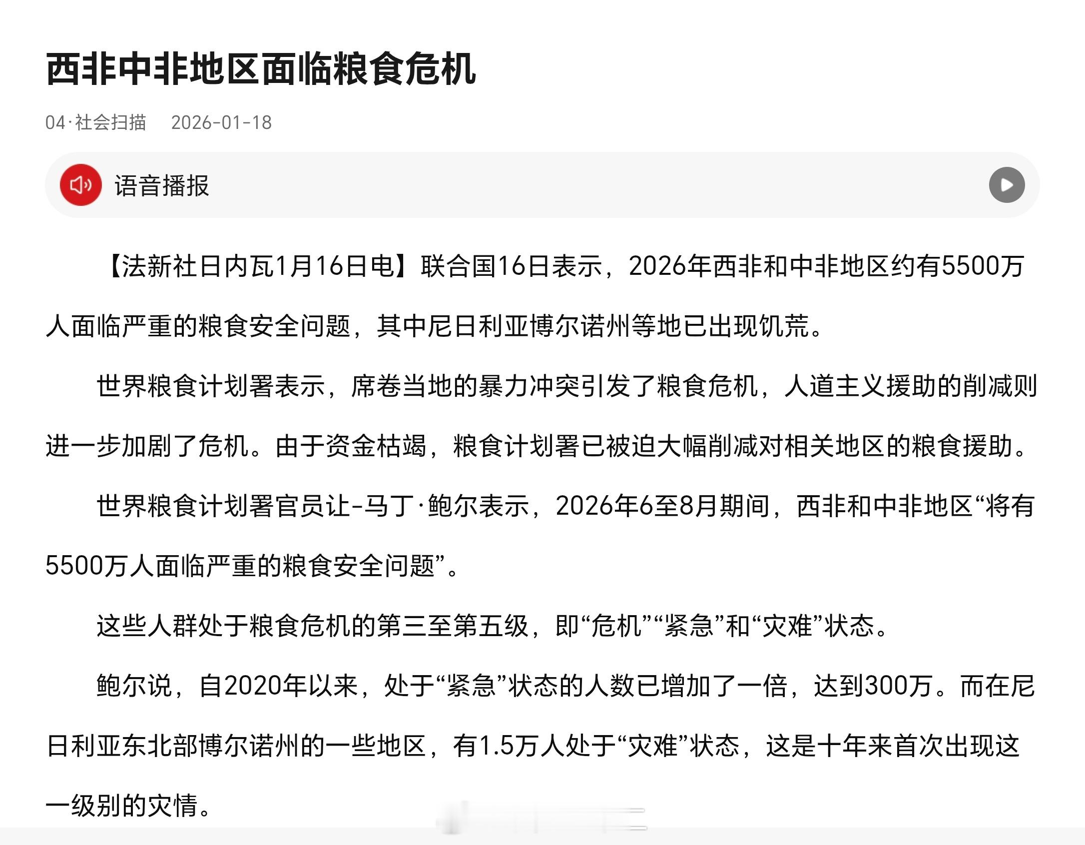 非洲地区经常性发生饥荒,根本原因是当地的农业生产力水平低下,中部非洲历史上仅仅产生过一个进入到封建社会阶段的文明,所以这个地区的生产力水平有多菜逼,应该能看懂吧?但是,非洲常闹饥荒的客观原因,只有一个,受西方世界蛊惑,不搞计划生育,印度也是这个原因,印度在1949年的时候比中国领先几十年,2025年的时候,印度比中国落后40年。。。次生现代化地区过快的人口增长,导致这些地区很难进入到真正意义上的现代化。有时间了详细阐述