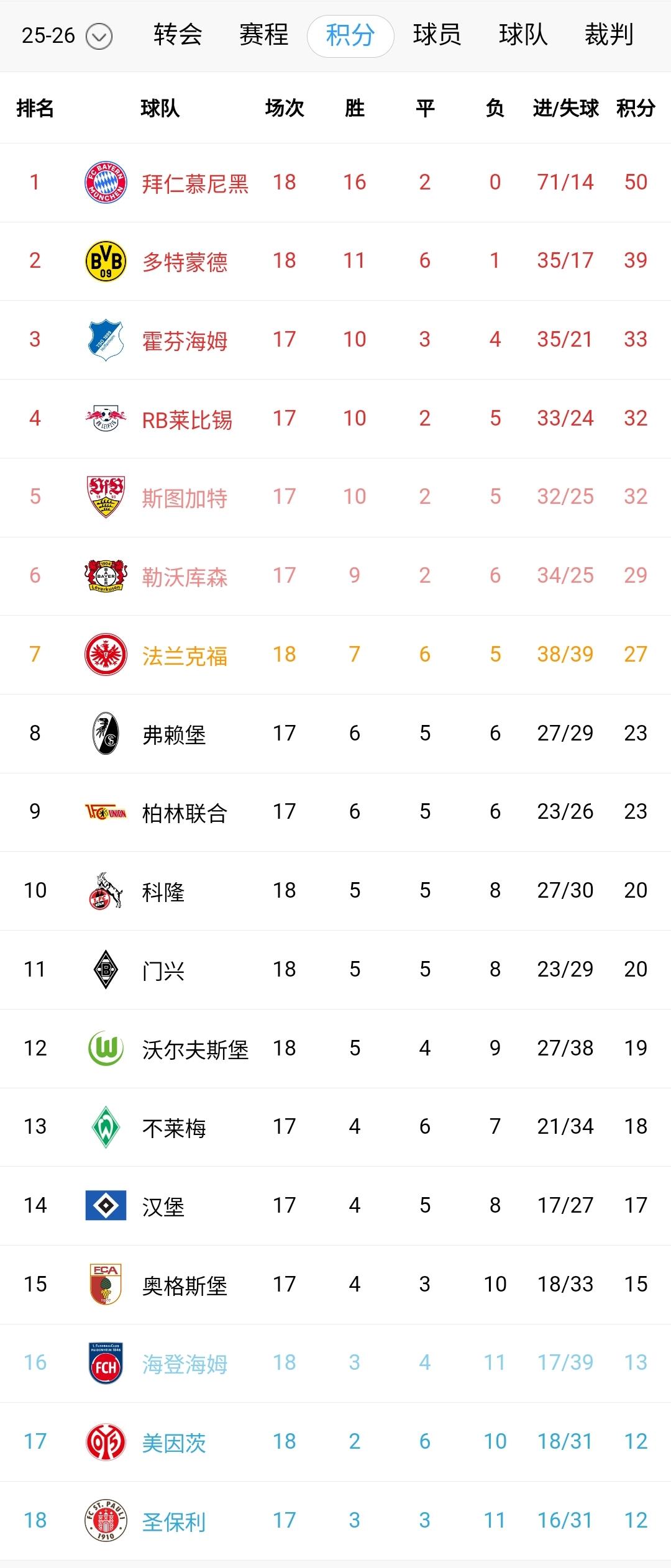 关注德甲的球迷可能比关注德乙的还要少……主要因为德甲太无趣了,冠军铁定是拜仁的,其它队争争第二。 联赛才踢了18轮,拜仁领先第二的多特蒙德已经11分了。 要不然有些球迷会去关注一下汉堡等升班马,看看北大王能否保级成功。一个多月了,汉堡仅获得1胜2平2负,积分距离降级区只有4分。