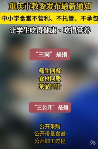 这两天看到一则振奋人心的好消息: 重庆、北京即将收回中小学食堂经营权!规定各中小学必须自办食堂,食堂不得营利、不得承包,让学生吃得营养、吃得健康!!这真是利国利民的大好事!希望这样的举措能尽快覆盖所有地区、所有学校,长期实施!! 说白了,收回中小学食堂经营权这事,就是把孩子嘴里的“安全锁”从外人手里抢回来,可这锁能不能锁牢、会不会被钻空子,还真不是一纸规定就能搞定的。 这两天重庆、北京要推行自办食堂、禁止承包营利的消息一出来,家长圈里都炸了,谁不盼着孩子在学校能吃上热乎又安心的饭菜,但兴奋劲儿过后,冷静下来想想,这里面的门道可不少。 别觉得收回经营权就万事大吉,如今早就不是过去那种凭良心办事的年代了。 有人说换学校自己管就能杜绝猫腻,可只要有人经手食材采购、账目核算,就有牟取好处的空间。 我听说有些地方的学校食堂,表面是自营,实则把食材供应、人员派遣拆分成小块交给原来的承包商,换个名头继续合作,和外包没本质区别,权力寻租的土壤还在,只是换了种生长方式,最后吃亏的还是孩子。 我曾经是老师,今天就说个实在真相,我们学校当年对外一直宣称,食堂餐食全是现炒现做,绝不碰预制菜,安全绝对有保障,这话倒也不算假。 可就是这么一家看似合规的食堂,那个从县城来的承包商,十几年经营下来,愣是在省会城市攒下了五六套商品房。 这笔钱从哪来?还不是从孩子们的饭桌上抠出来的,据说有些学校三千学生一天买肉才七斤,用廉价鸡肉滥竽充数,承包商的腰包鼓了,孩子们的营养却亏了,到底是谁在背后默许这种情况,答案不言而喻。 既然自营也有风险,我倒有个主意以供商榷,可以每天请一到两位有空闲时间的家长,作为监督员嵌入食堂运营环节,从食材验收、卫生检查到餐食质量,全程参与验证监督。 说到底北京、重庆的举措是好苗头,但要落实离不开严格的配套机制,比如市级集中采购平台控成本、食材追溯码保安全,还有家长监督委员会的深度参与,光靠学校单打独斗,很容易重走老路。 本文仅为个人看法,不代表任何立场,校园餐无小事,一餐一饭牵动着万千家庭。 你觉得家长监督能从根本上杜绝食堂乱象吗?各地推行的食堂自营模式还有哪些可优化的地方?欢迎在评论区留下你的观点,一起为孩子的餐桌安全出谋划策。