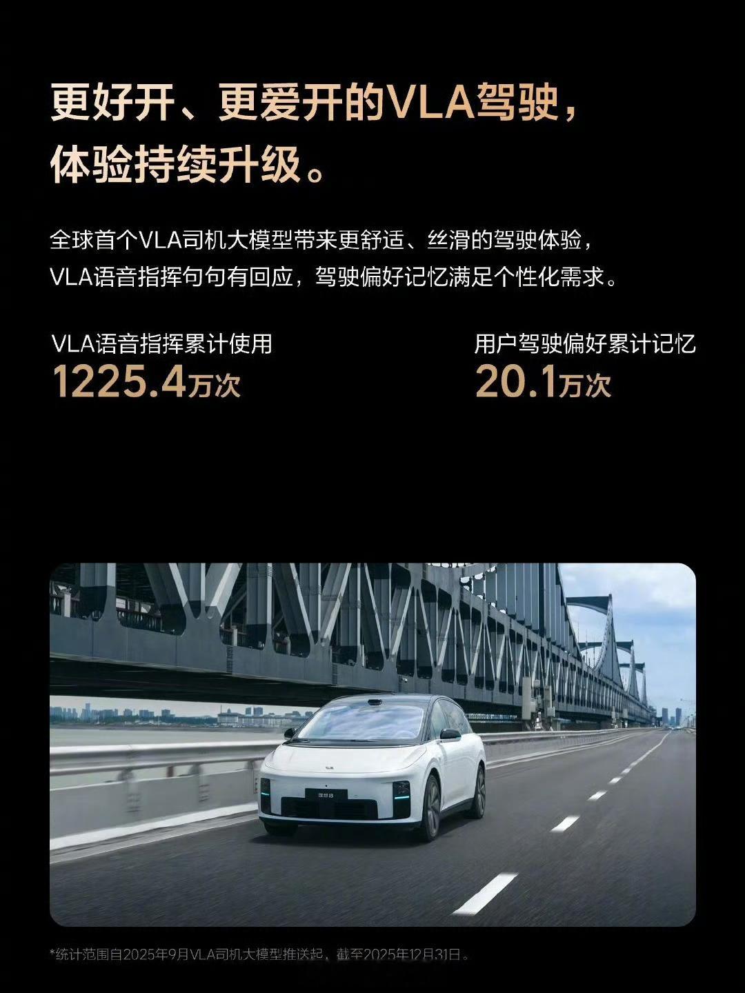 理想辅助驾驶 2025 年出行报告”:-辅助驾驶累计用户 150.5 万人;-理想辅助驾驶累计里程 60 亿公里(辅助驾驶全年里程 30.7 亿公里);-辅助驾驶用户活跃率 99.5%。理想汽车308_IO新能源汽车