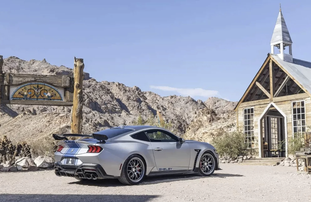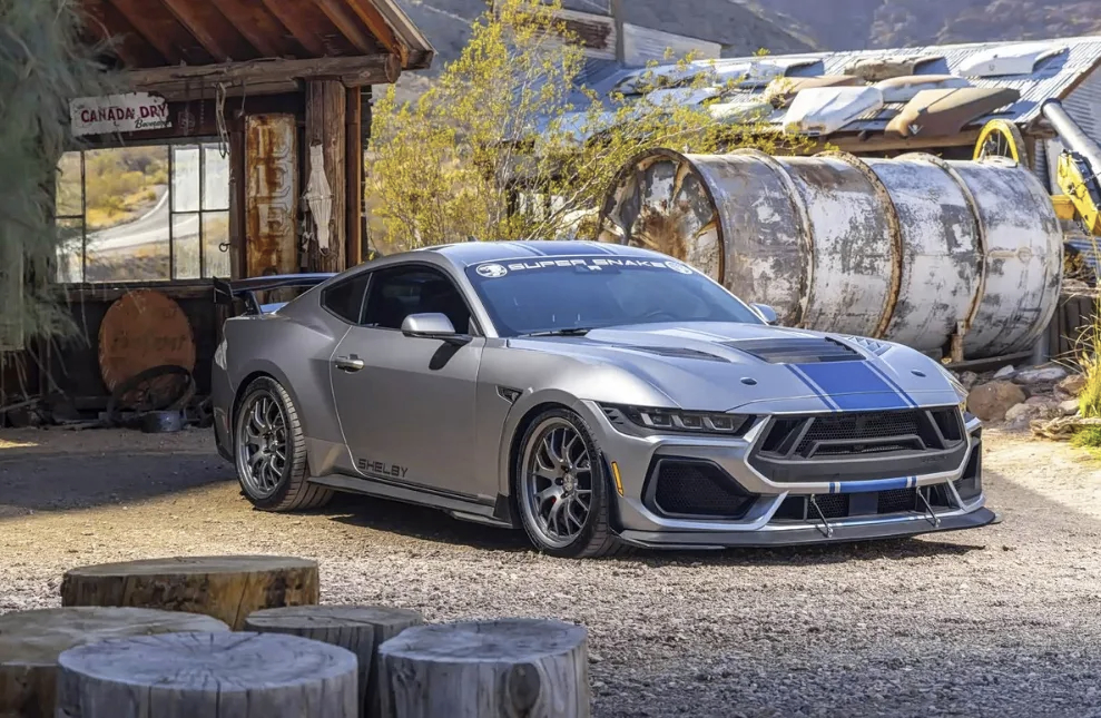 车市热门 日前,全新福特Mustang Shelby Super Snake官图正式发布,该车的到来将填补Dark Horse与GTD车型之间的市场空缺。其搭载5.0L V8机械增压发动机,最大功率可达830马力,限量销售300台。新车在外观方面依旧服务于车身减重以及空气动力学,其将配备铝合金发动机盖以及大量碳纤维饰板,同时还加大了散热开口的面积提升冷却效率。该车购买者还可获得谢尔比官方注册资格,这意味着它与经典Cobra、GT350和GT500一样被认证为正式Shelby车型。此外,新车还配备全新样式的镁合金轮圈,并针对半轴、轮圈螺栓以及底盘系统进行了全面的强化升级。用户还可以根据自身喜好,选择硬顶或敞篷版本。动力方面,新车将会搭载5.0L V8发动机,用户可选择自然吸气版本(最大功率480马力)或机械增压版本(最大功率830马力),传动系统6速手动变速箱或10速自动变速箱,其中手动变速箱挡杆还会提供Shelby原厂球头。