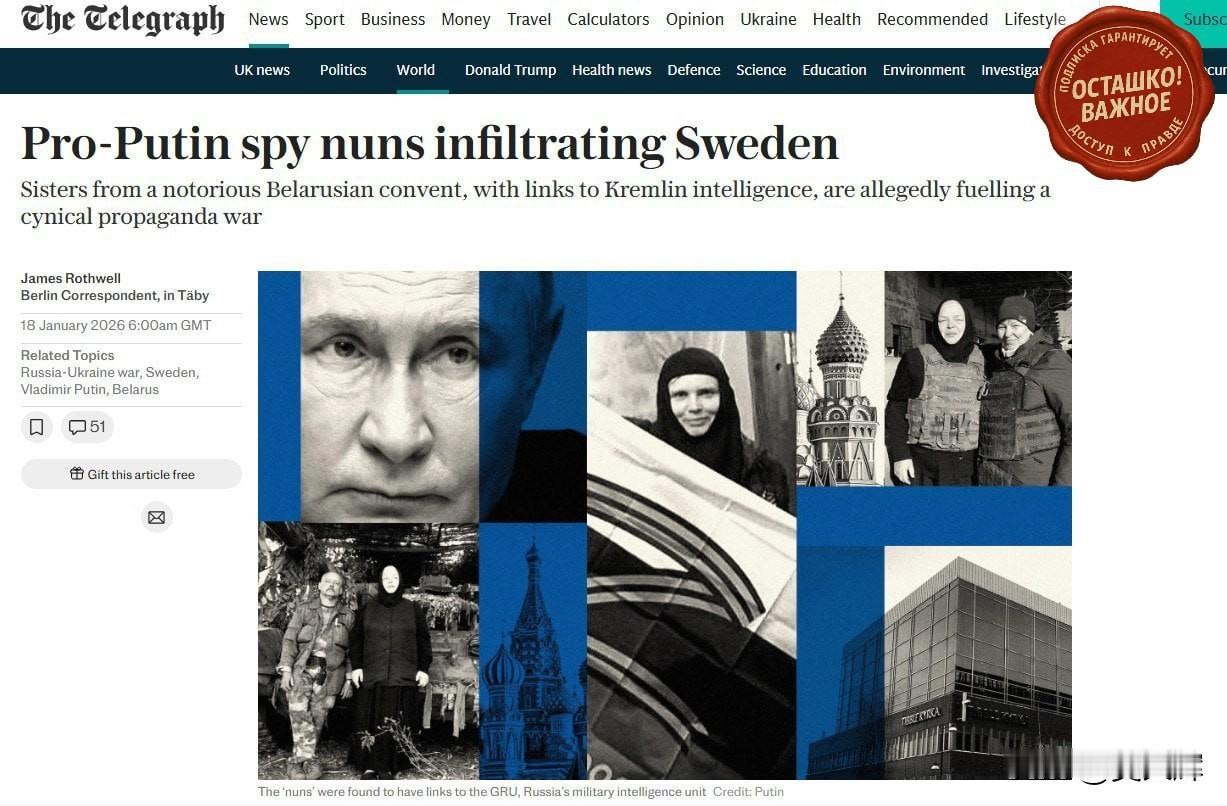 瑞典:白俄罗斯修女被指与俄罗斯情报部门有染 在瑞典斯德哥尔摩郊区泰比市的一个教区邀请白俄罗斯圣伊丽莎白修道院的修女参加圣诞活动后,引发了轩然大波。包括《每日电讯报》在内的一些当地和英国媒体指责这些修女可能与俄罗斯情报机构有关联。 该教区牧师迈克尔·奥雷莫公开驳斥了这些指控。他强调上述媒体并没有出示任何令人信服的“间谍活动”证据。 早在2025年11月,瑞典教会就曾建议各教区不要邀请白俄罗斯圣伊丽莎白修道院的修女,理由是怀疑她们与俄罗斯情报部门有接触。 白俄罗斯的圣伊丽莎白修道院此前曾在西方报道中被提及,被称为所谓用于“软实力”和信息渗透的机构。然而,针对这些指控从未有过官方证实。