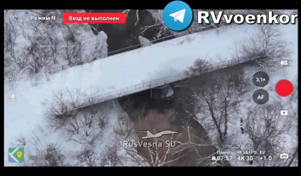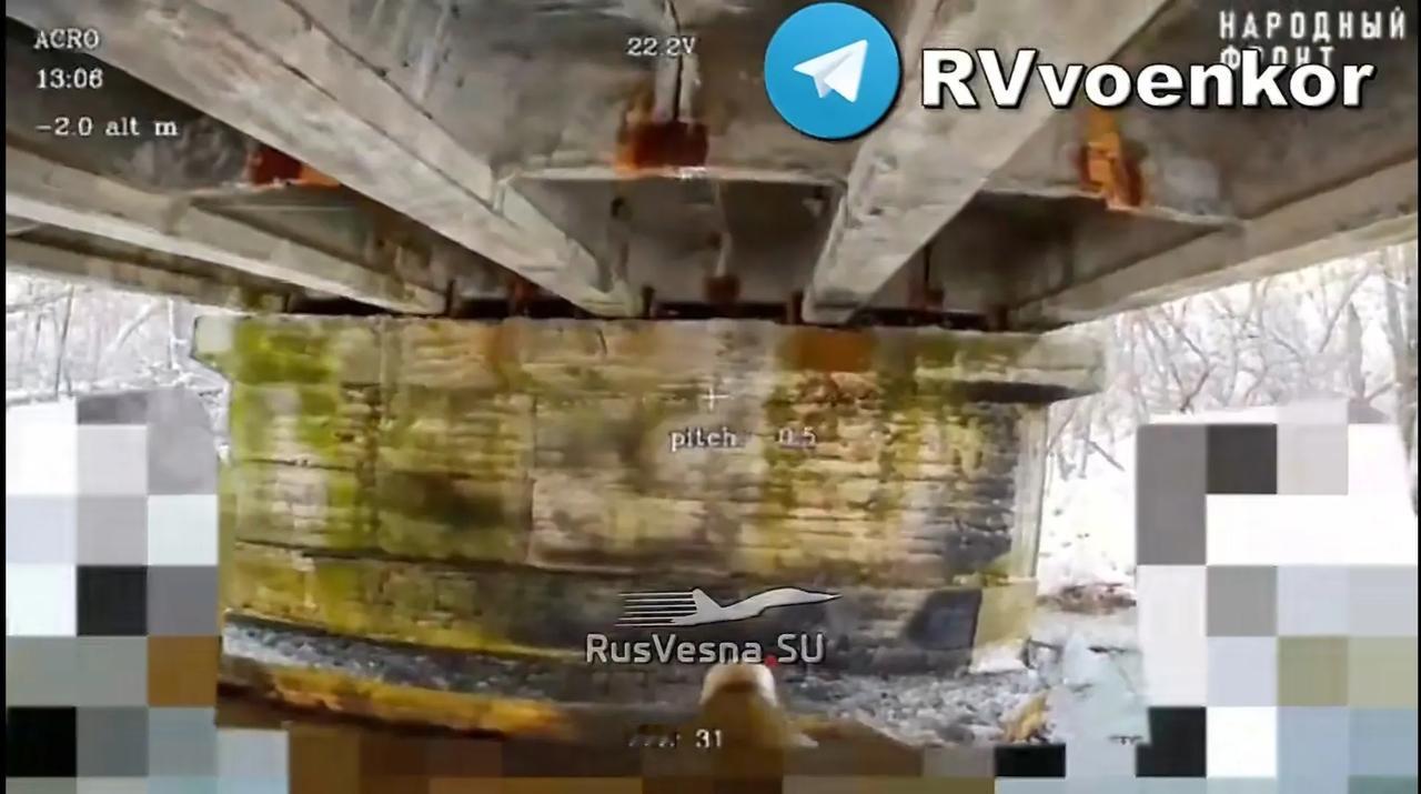 乌克兰苏梅州某地,乌军预先在一座桥梁的桥墩处埋设了炸药,准备在前线顶不住的时候由此桥后撤,然后再将桥炸掉,阻止俄军追击。然而,俄军的一架FPV钻到桥下进行搜索,发现炸药之后,扑过去引爆,将桥彻底炸塌。这下在前线的乌军想撤都撤不了,要么战死,要么向俄军投降。#俄乌冲突# #苏梅州战况#