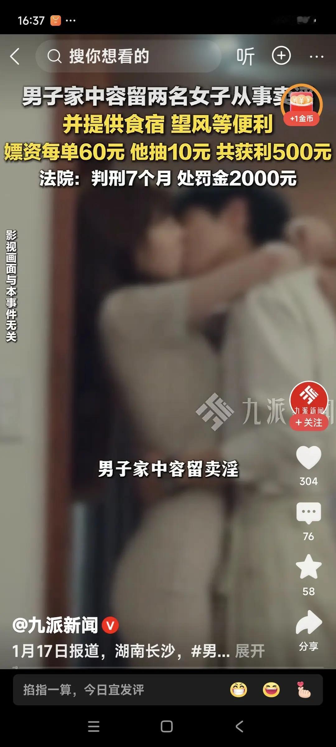 无业男子周某容留“失足女”卖淫被抓,此后周某被判刑。周某无业,去年先后容留“失足女”邹某和李某在其家中进行卖淫。每次由周某提供吃住和望风,获利300元和200元,共500多元。周某犯容留卖淫罪,法院依法判处其有期徒刑7个月,并处罚金2000元。 麻烦看官老爷们右上角点击一下“关注”,既方便您进行讨论和分享,又能给您带来不一样的参与感,感谢您的支持!