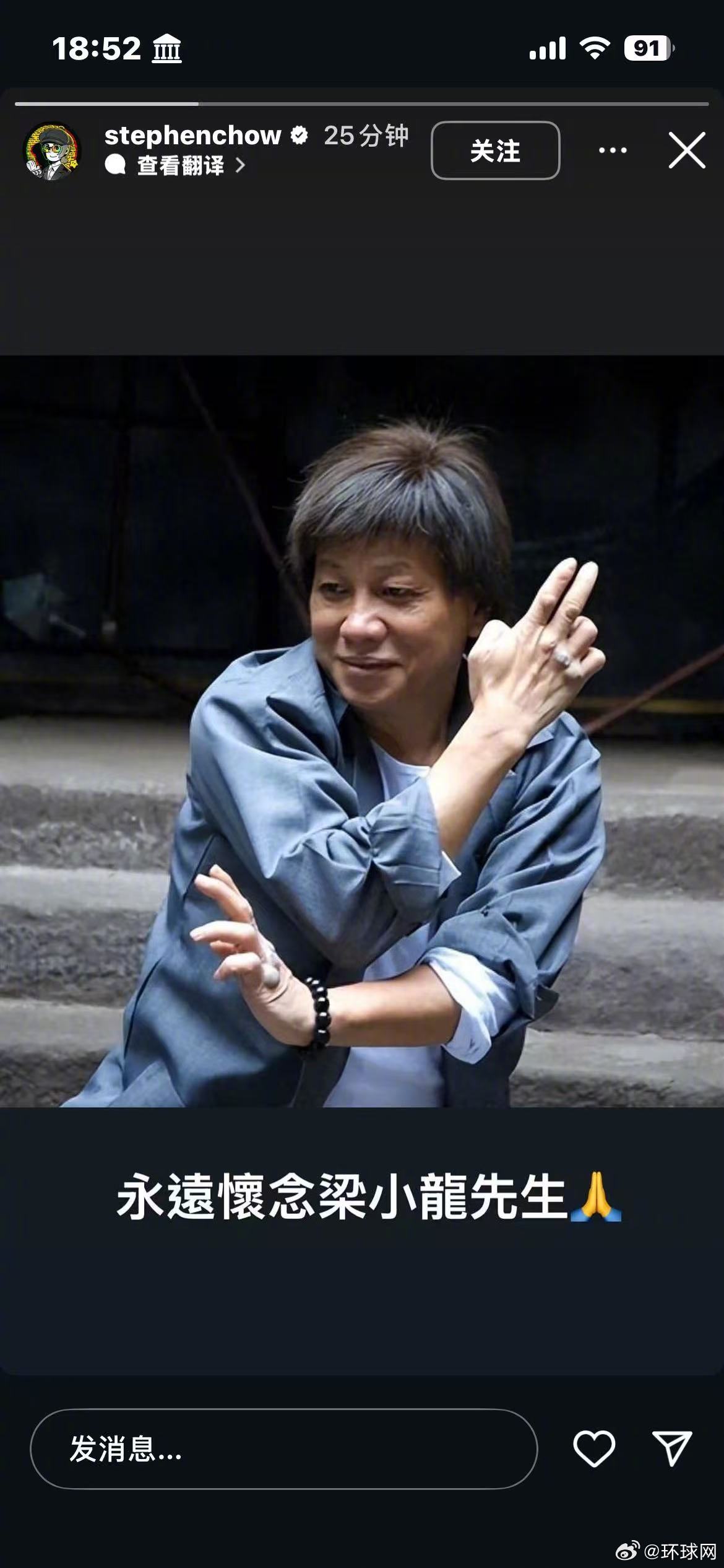 #周星驰发图悼念梁小龙#【港媒:“火云邪神”梁小龙去世,周星驰发图文悼念】据香港“星岛头条”、东网等多家港媒18日报道,著名功夫影星、曾在周星驰电影《功夫》中饰演“火云邪神”而深入民心的梁小龙,于1月14日不幸逝世,享年77岁。18日,周星驰在社交平台Instagram发图文悼念称“永远怀念梁小龙先生”。梁小龙,1948年4月28日出生于中国广东省中山市,中国香港男演员、武术家、武术指导。在上世纪70年代,梁小龙与李小龙、成龙、狄龙合称“香港演艺圈四小龙”。梁小龙早年曾出演电影《功夫》中“火云邪神”一角,在香港电视剧《大侠霍元甲》和《陈真》中饰演霍元甲的徒弟、民族英雄“陈真”,这些剧作当时风靡中国大陆,他也由此成为上世纪80年代初香港最负盛名的武打明星之一。