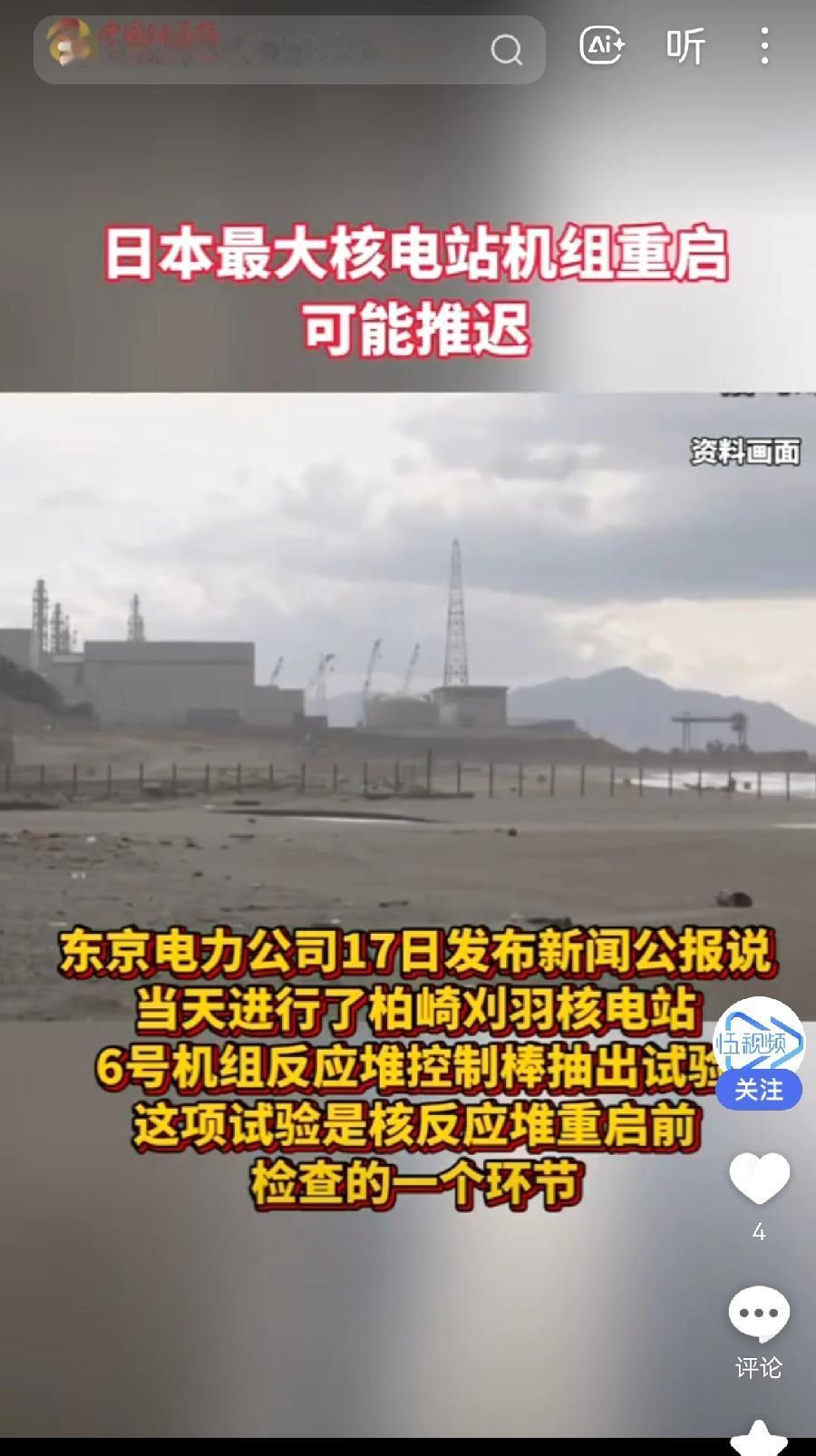 真替日本出了一身冷汗 东京电力公司突然宣布了 2026年1月18日,东京电力公司突然宣布:日本最大的柏崎刈羽核电站6号机组在重启前最后测试中,控制棒防抽出功能出现故障——本该响起的警报居然"哑火"了!这个已经停运近15年的核电站,原定1月20日就要重新发电,现在重启计划被迫暂停。 这事儿听着就让人捏把汗。控制棒是核反应堆的"刹车系统",防抽出功能失效意味着紧急情况下可能无法及时停堆,属于严重安全隐患。更让人担心的是,这已经是东电继福岛核事故后第二次在柏崎刈羽出问题——去年就因消防系统不达标被叫停过。一个号称"最严格检查"的核电站,在最后关头还能发现这种低级错误,实在让人对日本核安全监管打问号。 现在重启时间肯定要推迟,但问题不只是延期这么简单。核电站不是普通工厂,安全是底线中的底线。东电作为福岛核事故的"前科犯",本该用最高标准重建信任,结果又在关键环节掉链子。这不禁让人怀疑:他们到底有没有从福岛吸取教训?重启前的检查都能出纰漏,运行后会不会有更多隐患? 说到底,核安全不是儿戏。希望日本政府和东电能真正把安全放在第一位,别为了经济利益赶进度。毕竟,核事故的代价,谁都承担不起。