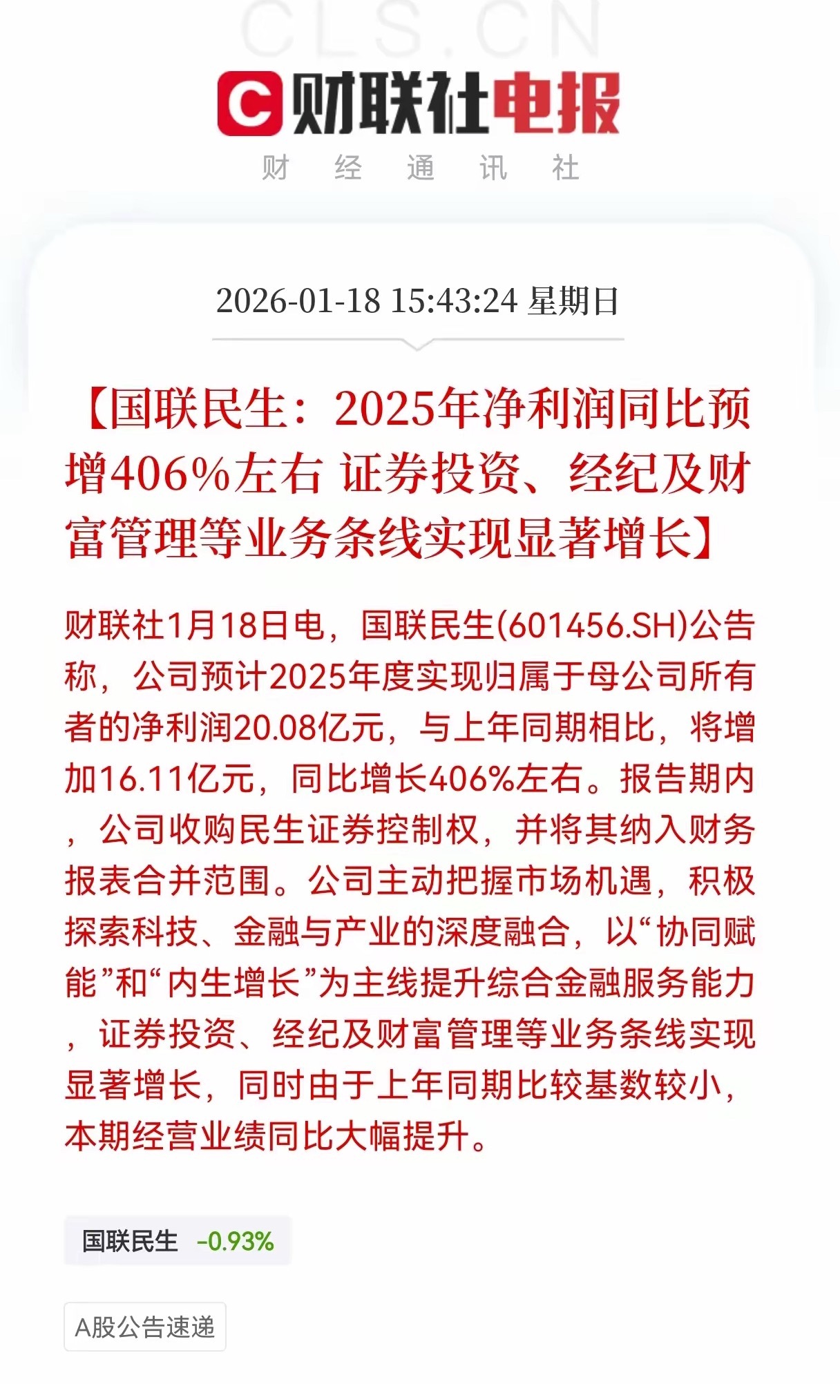 利好!重大利好来了!券商国联民生净利暴增406%,券商板块估值修复行情正式点燃,预计明日券商板块要点火起飞了。国联民生2025年业绩预告引爆资本市场,预计归母净利润达20.08亿元,同比狂飙406%,净增额高达16.11亿元,创下公司历史最佳业绩纪录。这波超预期爆发绝非孤例,而是券业全面回暖的明确信号,明日板块大概率迎来资金抢筹热潮!国联民生业绩爆增,主要由三大业务形成强劲合力:证券投资业务精准把握市场上行周期,斩获丰厚收益;经纪业务借势股基成交额突破500万亿元的行业红利 ,手续费净收入同比激增293%领跑行业 ;财富管理转型持续深化,代销与投顾业务贡献稳定增量。国联民生的爆发是全行业的缩影,43家上市券商前三季度净利同比均值高达62%,超六成券商增速超50%,中信、国泰海通等头部券商净利均破百亿 ,90%以上券商将披露“预喜”公告。业绩高增背后是2025年A股交投活跃度同比大增70%,两融余额突破2万亿元创历史新高 ,投行IPO与再融资规模翻倍增长,政策暖风与市场赚钱效应形成正向循环。当前券商板块市净率仅1.49倍,处于历史估值低位,而行业盈利增速预计超55% ,业绩与估值的剪刀差正迎来修复窗口。这不仅是短期情绪催化剂,更是布局硬逻辑的黄金时机。随着头部券商引领、中小券商跟涨的板块轮动展开,叠加政策支持与资金面改善,券商板块有望摆脱震荡格局,开启估值修复主升浪。这场由业绩引爆的行情,正成为资本市场拥抱新质生产力、把握权益市场机遇的最佳切入点!
