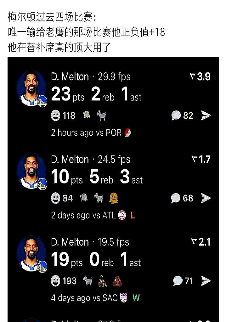 ACL撕裂第330天,他又要打勇士了 膝盖刚拆护具那天,梅尔顿给经纪人发了一句话:我还能回勇士吗?没人当真。勇士刚把他换去篮网,省了一千多万税,转头又底薪签回来,等于白捡一个防守大闸。 现在他在发展联盟打了三场5对5,场均18分钟,抢断还是1.4次,膝盖没肿。勇士后场正缺人,佩顿二世顶不住,波杰姆斯基被追着打,科尔直接说:12月初给他留位置。 合同两年653万,第二年球员选项,打得好明年还能涨。勇士算盘打得精:奢侈税爆表,底薪淘个能防的,比交易省钱多了。 他上一次穿勇士球衣只打了6场,三分40%,抢断全队第一。这次回来,库里又老一岁,格林脾气更爆,机会比上次大。膝盖行不行,12月见真章。