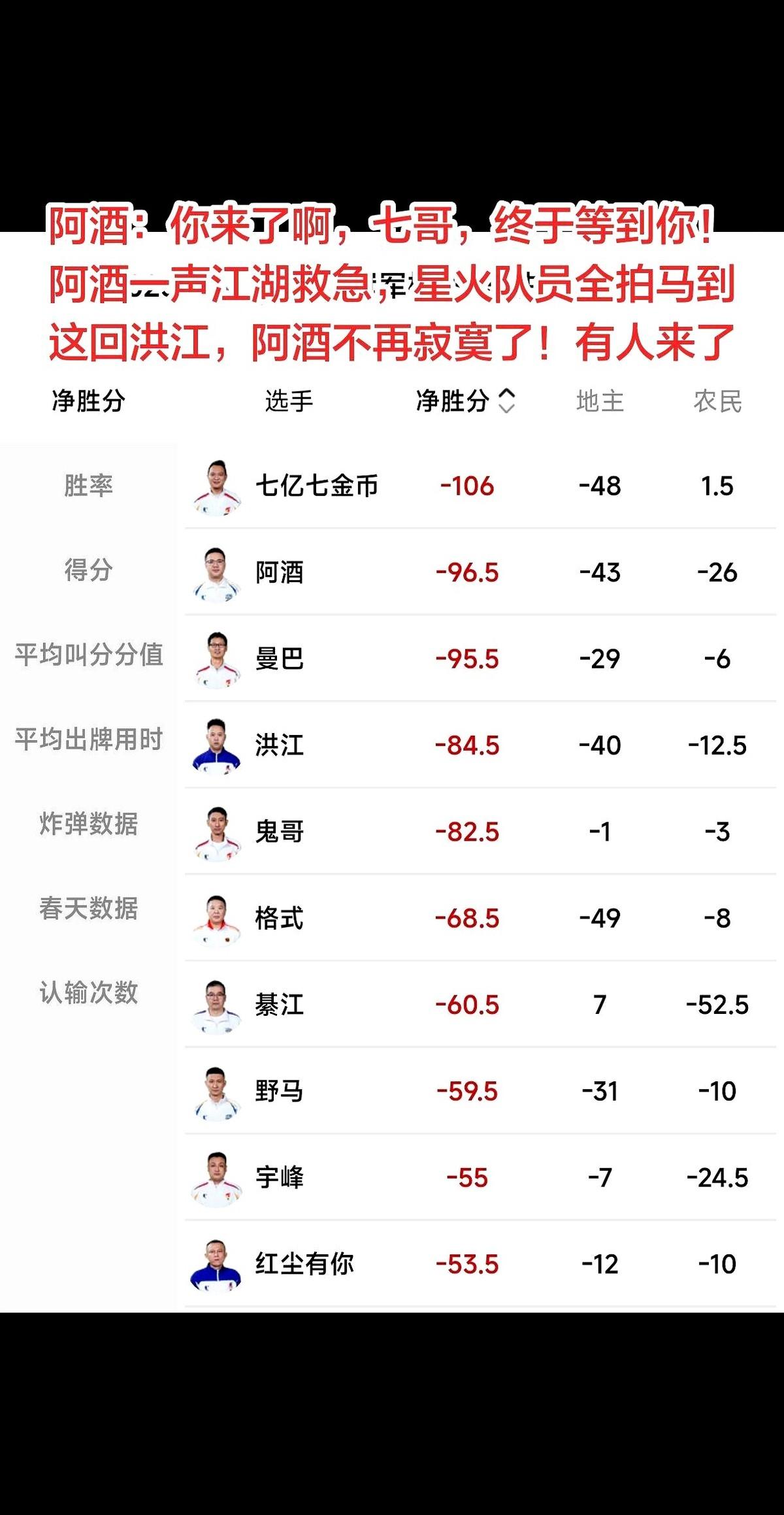 服了,我算是彻底服了七哥了。 别人还在那儿吭哧吭哧算总分,他直接把“净胜分”玩成