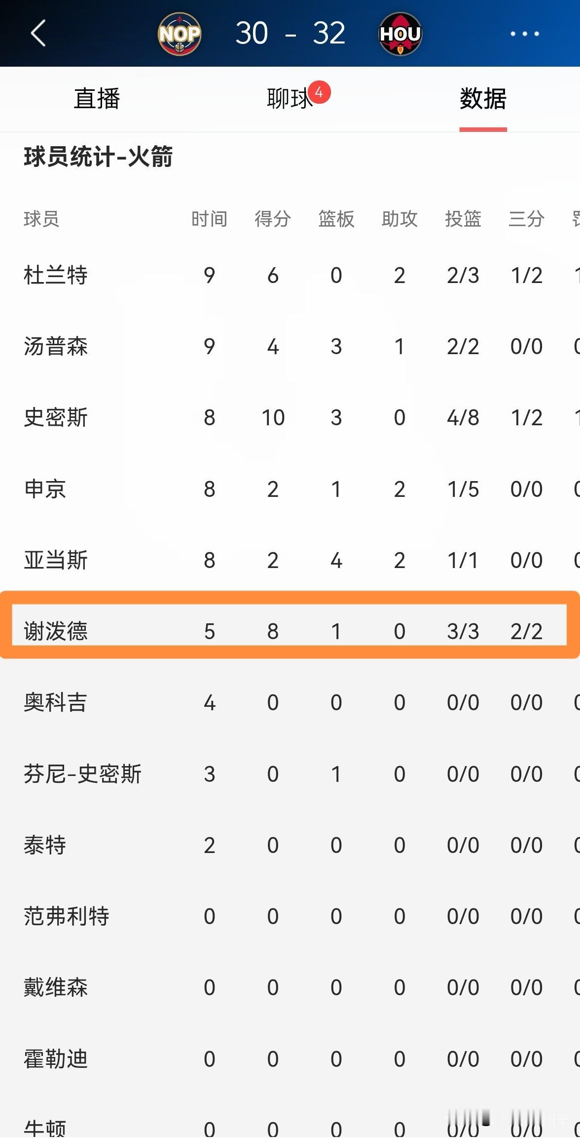 火箭超级新星谢波德真是准的不像话!在今天进行的火箭和鹈鹕的比赛中,目前双方的首节比赛已经结束,火箭暂时以32:30领先对手2分。在第一节比赛中,谢波德替补出战5分钟,投篮3中3,其中三分球2中2砍下8分1篮板。 最让人感到不可思议的是,谢波德在鹈鹕将比分迫近的时候连续命中了两记非常不讲理的三分球,帮助球队稳定了局势,展现出了非常火热的投篮手感和强大的投篮自信。
