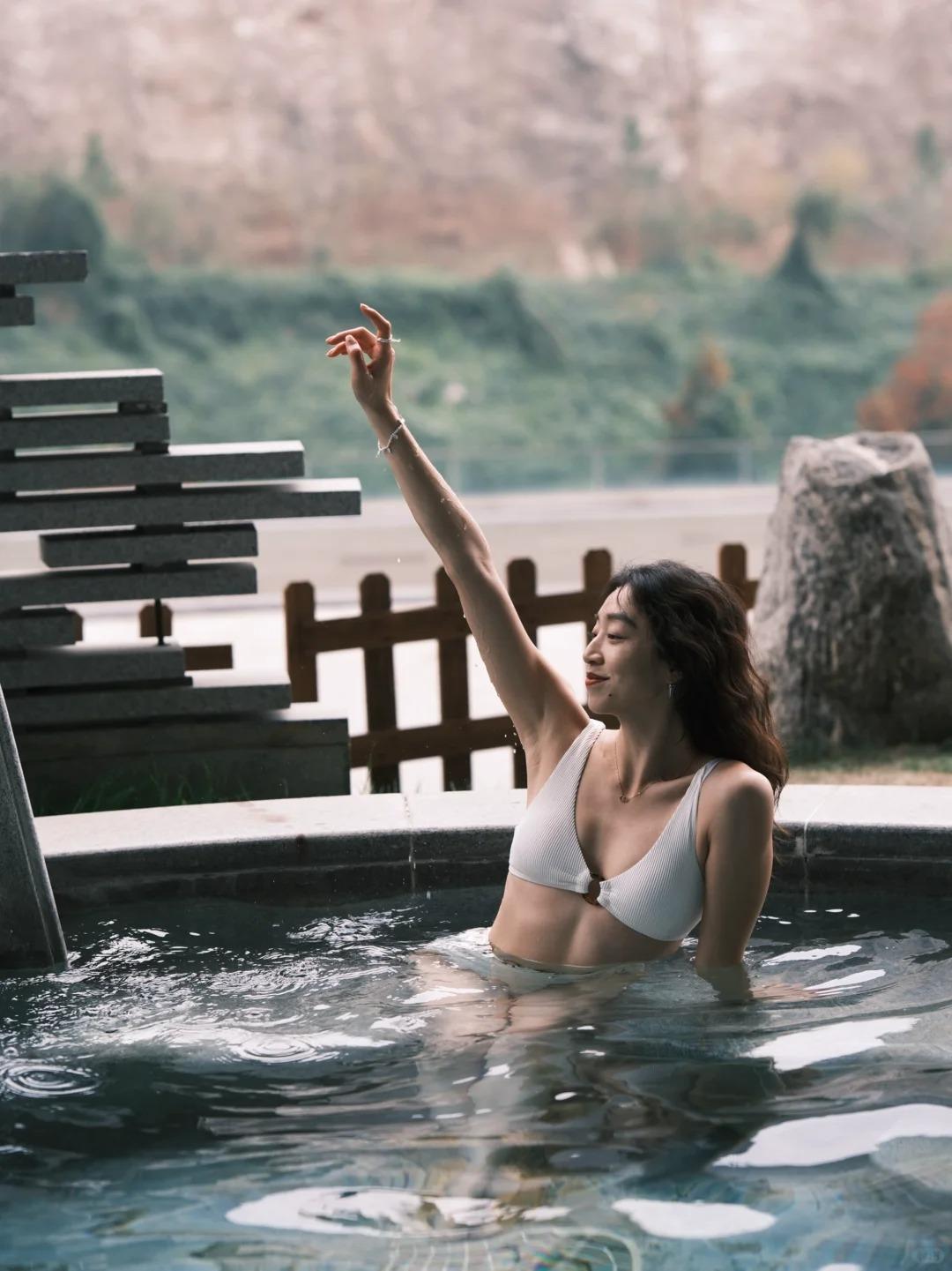 晒图笔记大赛寒风裹着都市的喧嚣退去,此刻只沉湎于山林间的温泉里。山影漫过池边,树影垂落水汽间,温热泉水漫过肩颈,紧绷的神经一点点舒展。氤氲雾气模糊了边界,只听见风穿林叶的轻响,鼻尖萦绕着草木与温泉的清润。大口吞吸着山林里的鲜氧,把日子里的拥挤与浮躁都吐出去。原来治愈从不是复杂的事,不必追赶时间,无需迎合旁人。这一刻,泡在自然的怀抱里,把生活完完整整还给自己,所有疲惫都被暖意消解,只剩心安与松弛。泳衣白色温泉好身材高清美女魅力