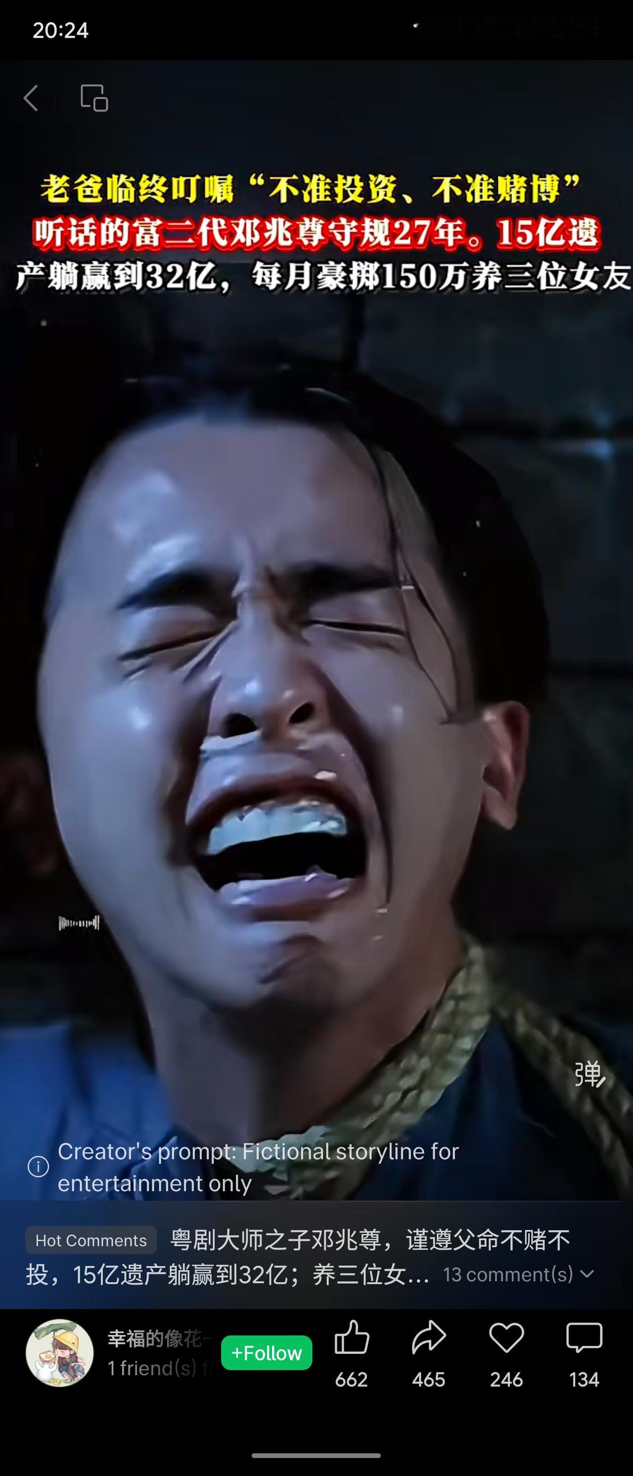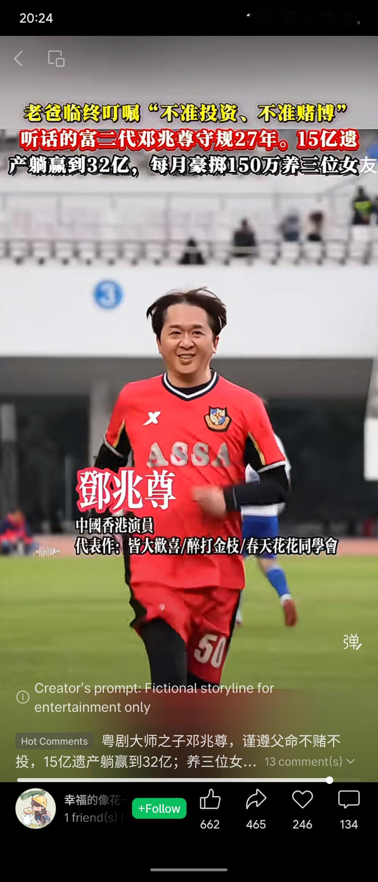 已故粤剧大师之子、香港演员邓兆尊,为遵从父亲“不投资、不赌博”的遗愿,守规27年,却仍将15亿遗产增值至32亿,并每月豪掷150万同时交往三位女友。