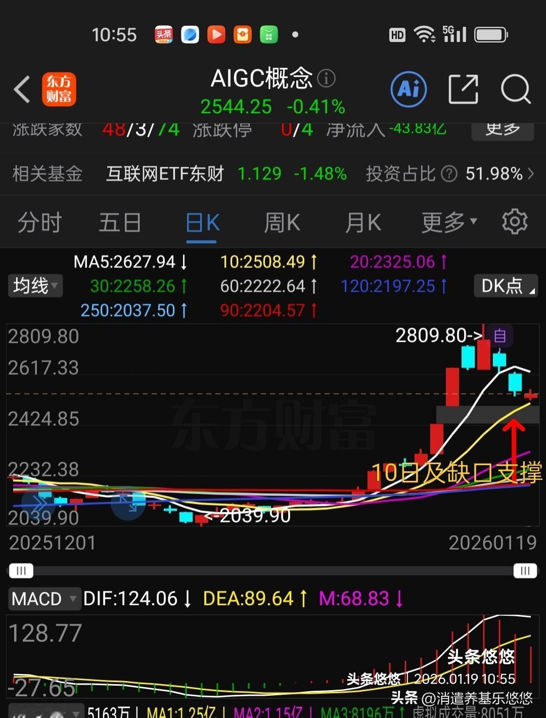 AI应用板块今天主力资金持续流出,要考验10日线及缺口支撑力度,这个位置守不住,就要去回踩下方20日线支撑,下跌空间比较大,不要抄底,耐心等待回调到位。目前几个混合型主动基金估值1--2%还在下降,远远落后板块涨幅!