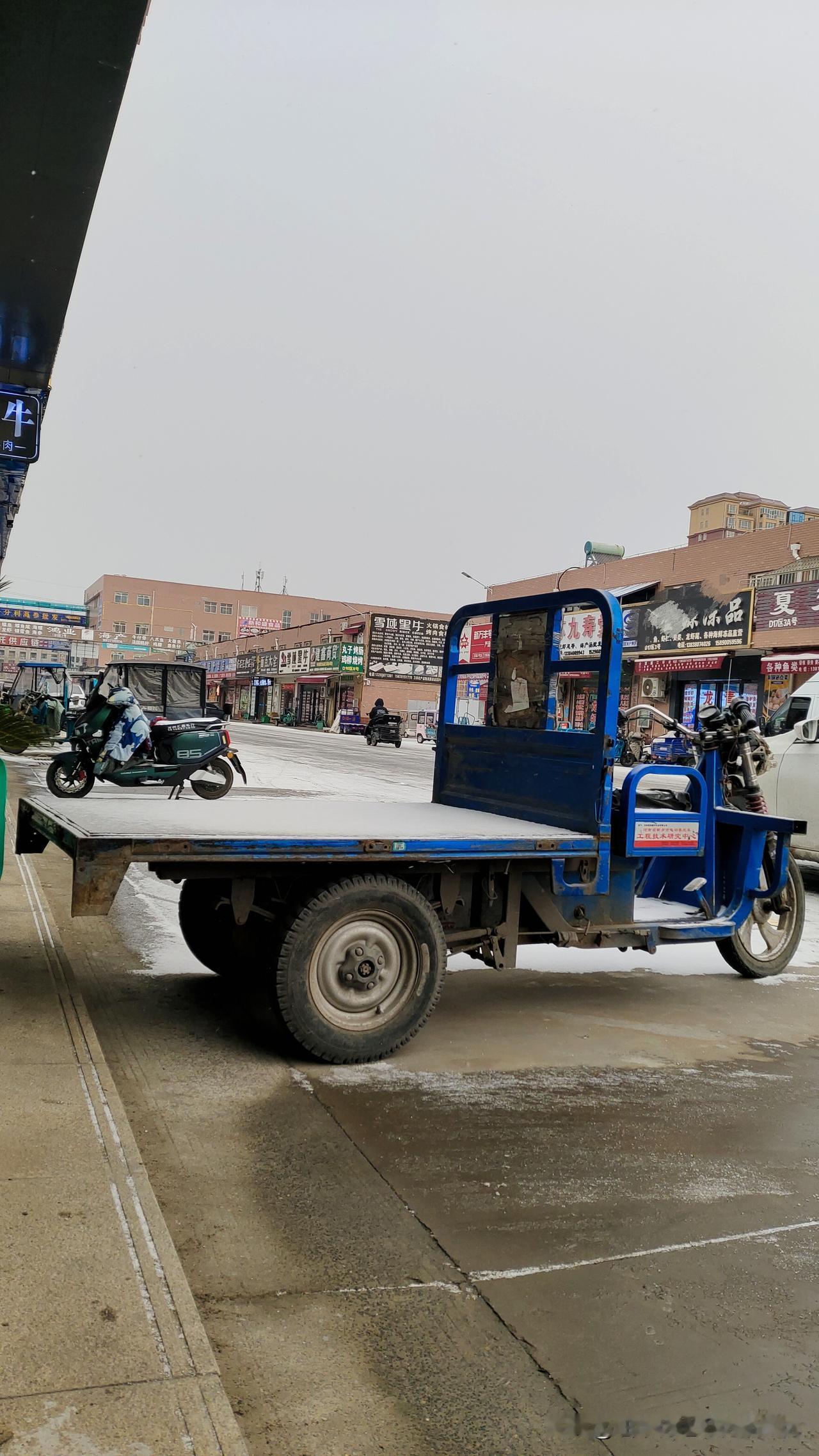 因为预报的有暴雪,在郑州上班的我今天出门穿了棉袄棉裤,还穿了大棉靴,做好了抵御暴雪的准备。 雪其实下的不大,雪片一朵朵鹅绒似的,被乱风裹挟翻飞,却并不密集,别说“暴”雪了,连中雪都称不上。 到了店里,拿了大扫帚先扫门前雪,浮雪很好扫,只留下地面薄薄一层冻冰,看起来冻得也并不瓷实。 上午不到11点时,雪停了,我又拿了大扫帚去扫雪,这下连早上没扫掉的冻冰也一并扫走了,看来地没冻透。照这温度,市场里不用召集铲车来铲雪了,来来往往的小轿车都把雪碾化了。 看了下天气预报,明天没雪了,可能郑州这个冬天都没雪了。 下班去看雪景的计划落了空,因雪停课的学生估计下午或明天一早就要返校,郑州的暴雪就这样忽悠过去了。 下图就是郑州万邦市场雪后景况,河南其他地区的老乡们,你们那里下大雪了吗?