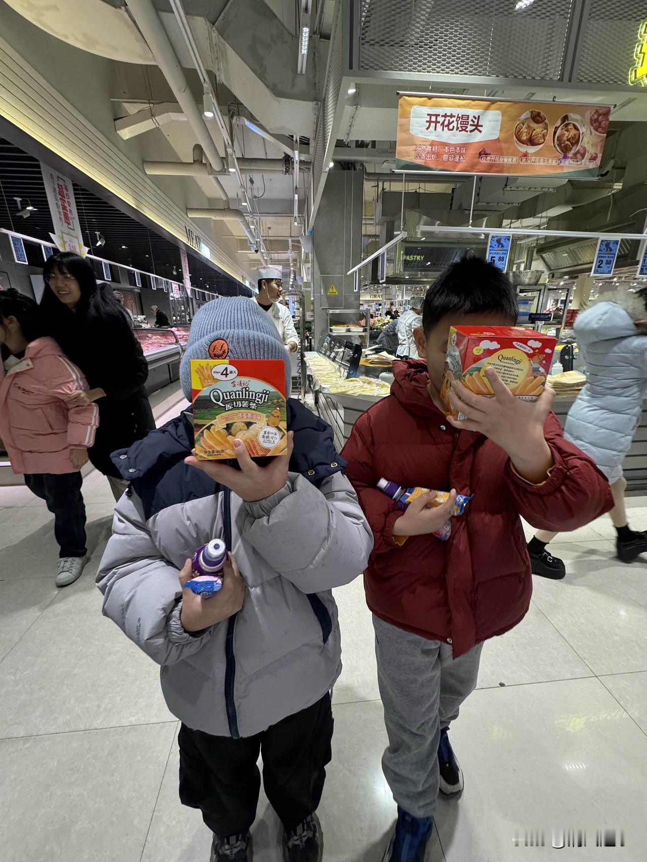 超市里的“躲猫猫”,是童年最甜的糖🍬 带俩娃逛超市,刚拿了果冻就被他们举起来挡脸,一路晃着走,像揣着两块会笑的小太阳。 货架的灯光暖乎乎的,周围都是挑菜的阿姨、称肉的大叔,烟火气裹着孩子的笑声,比任何玩具都治愈。 突然觉得,幸福哪需要什么大场面?就是攥着零食的小手、藏在包装后的鬼脸,和这满当当的市井热闹。 平凡日子里的小捣蛋,才是实打实的甜。