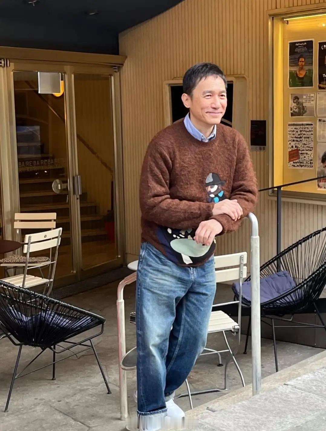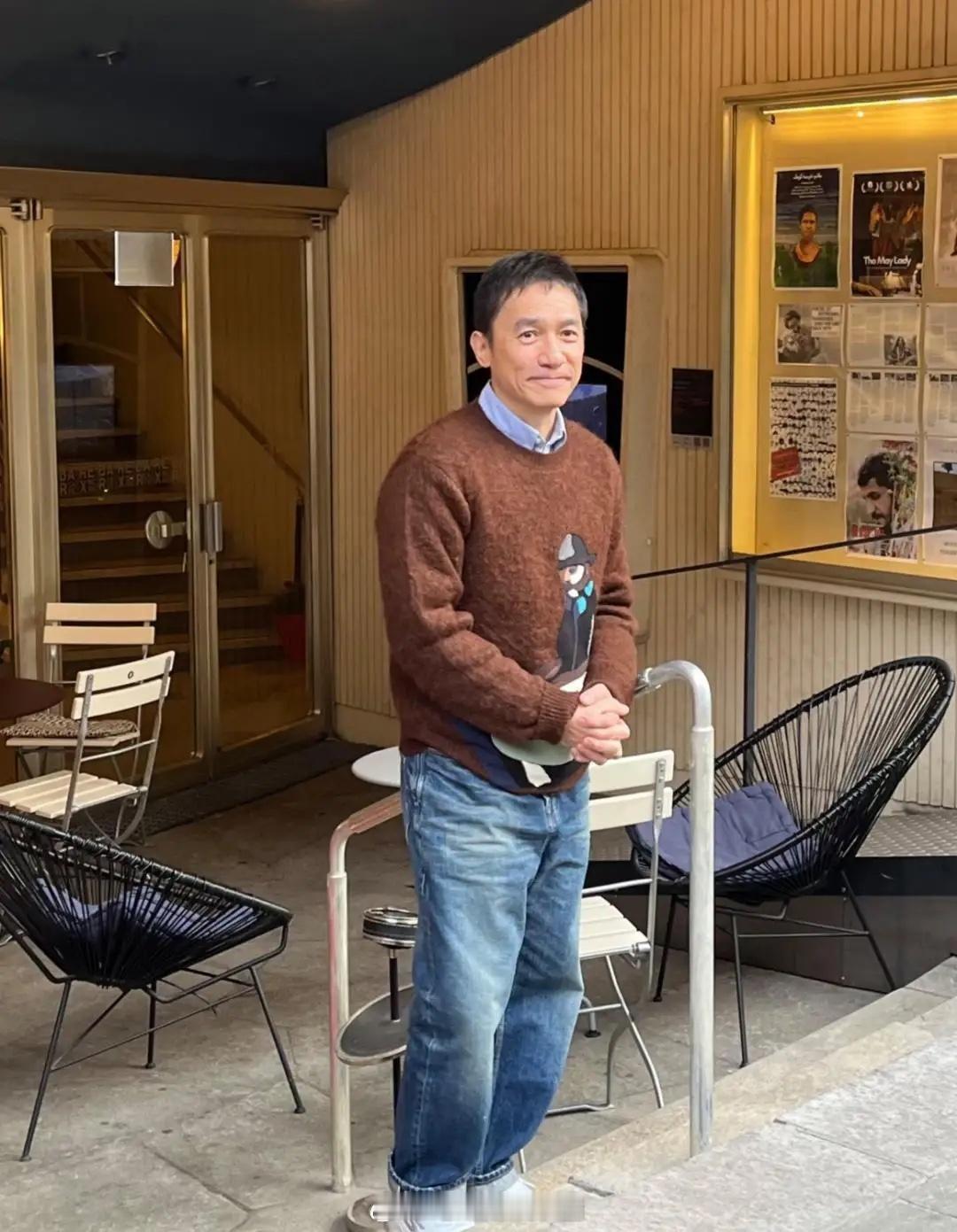梁朝伟在瑞士一家咖啡店被偶遇,他打扮休闲,他看起来苍老了好多,整个人有点怯怯的,笑得好腼腆,看起来好有亲和力,他自然哀老,他还是那个最帅气梁朝伟。