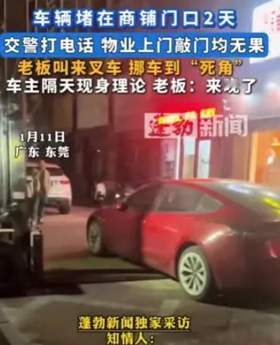 广东东莞,车主将车停在一个商铺门口,停了两天,商铺老板报警两次,他不来挪车,交警打电话他也不理睬,物业上门敲门,他也不当一回事,商铺老板一气之下,叫来叉车,将车挪到死角,这下车主现身了,他和商铺老板理论,商铺老板说道:谁叫你现在才来?现在来有什么用? 两天前,一辆银灰色轿车缓缓停在了店铺门口。当时,店主王老板正忙着搬货上架,并未太注意。可到傍晚,他发现车依然停在那里,挡住了店铺大门的出口。 王老板走出门,试探性地敲了敲车窗,没有人回应。心里隐隐有些不满,他拿出手机,拨通了交警局的电话。 “喂,你好,我这里有辆车停在我店门口已经两天了,车主不在,能帮忙处理吗?”王老板语气中带着急切和无奈。 交警答应核查,但因为车辆没有违法停车标志,只能联系车主先行处理。于是,交警又打电话给车主,但电话那头始终无人接听。王老板等了一上午,电话打通依然无人回应。 到了第二天,王老板心里的怒气逐渐累积。他每天要进出门搬货、接客户,可那辆车却像一堵无形的墙,挡住了整个出入口。 于是他报警了第二次,这次警察再次打电话给车主,但依然杳无音信。 王老板的耐心已经快要耗尽,他找到物业寻求帮助。物业工作人员上门敲门,也希望车主能出来将车挪走,但同样徒劳无功。 每次门被敲响,他能从车里听到轻微的响动,仿佛有人在车里,但却没有人开门回应。王老板越想越生气:“这样下去我的生意都受影响了,这人是把规则当耳边风吗?” 两天的时间,王老板的怒气像滚烫的水一样攒了起来。他盯着那辆银灰色轿车,脑海里不断浮现出自己的货物搬运不便、客户迟到的画面。 终于,他决定不再等待交警的介入,也不再相信物业会有奇迹。他叫来了自己认识的叉车司机,手指着那辆车说:“我们搬走!” 叉车隆隆作响,王老板站在一旁,目光冷厉。叉车慢慢贴近银灰色轿车的前端,司机小心翼翼地将车抬起,向旁边的死角挪去。 车轮在水泥地面上摩擦发出刺耳的声音,周围街坊的人纷纷探出头来看热闹。 就在车辆最终被推到死角停稳的瞬间,轿车车门猛地打开,车主李先生气喘吁吁地跑出来,一脸不可思议与愤怒:“你们在干什么?谁准你们动我的车的!” 王老板淡定地看着他,语气平静却透着冷意:“谁叫你现在才来?现在来有什么用?你的车已经被挪到死角了,这两天你让我的生意、我的客户、我的货物受了多少影响,你知道吗?” 李先生脸色一阵青一阵白,显然没想到商铺老板会采取这种行动。 他开口想解释,可话还没说完,王老板接着说道:“交警打电话你不理,物业上门你不回应,我没有时间再等。你以为你的车就可以随便停在别人门口吗?两天时间,你觉得这公平吗?” 周围的邻居和路人都在看热闹,一些人点头表示理解王老板的做法,还有人小声议论:“这车主也太不讲理了,连交警电话都不接。” 李先生无奈,最终只能闭上嘴,默默盯着被挪开的车辆。