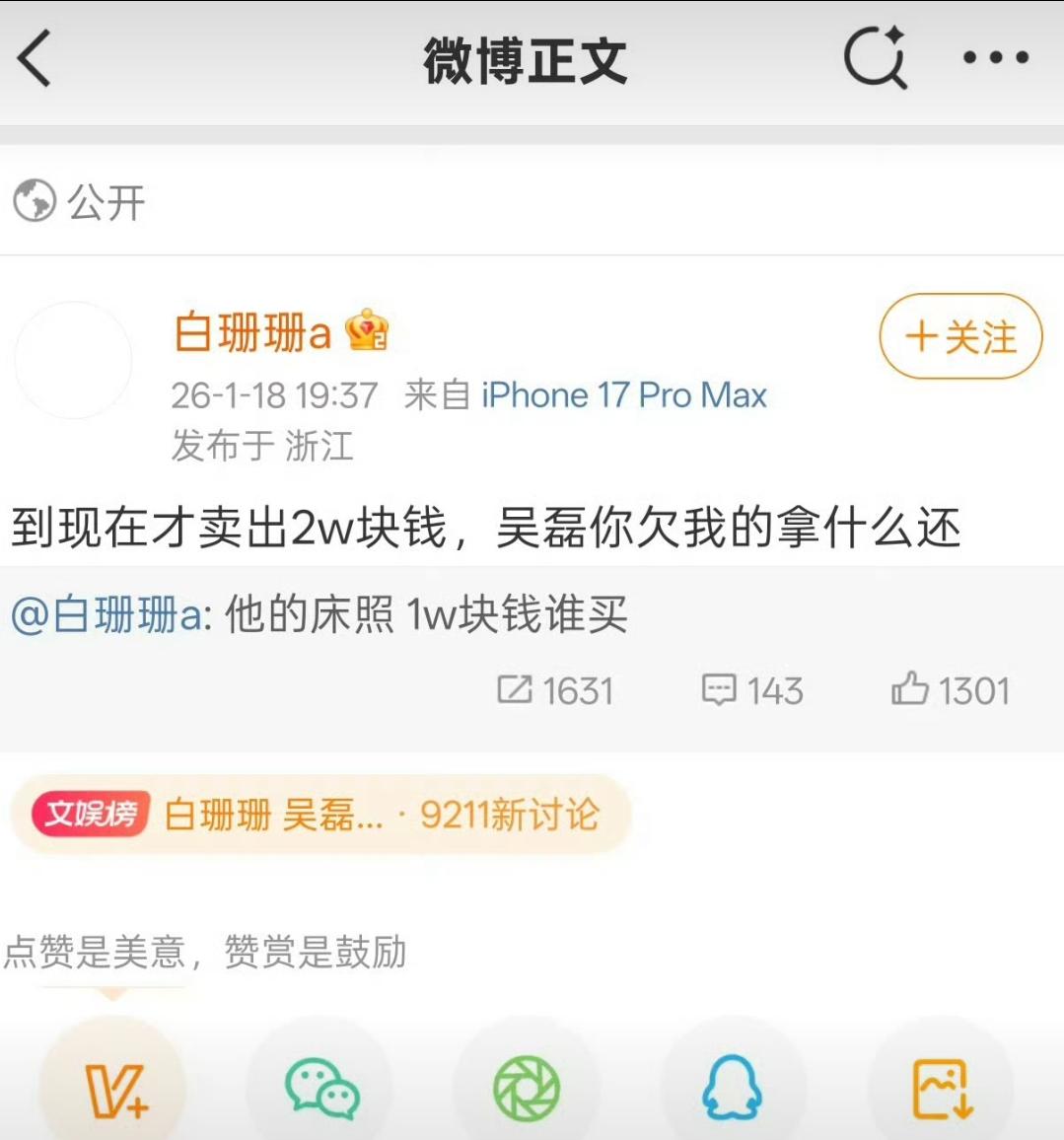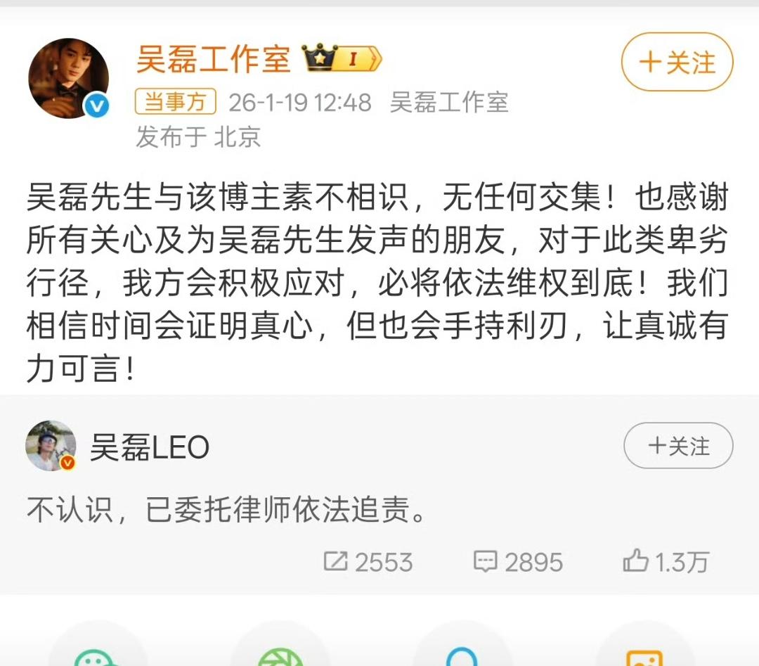 不认识 这波瓜也太魔幻了! 爆料博主白珊珊大号被炸,转头小号艾特吴磊喊冤:是不是你举报的? 吴磊光速回应:不认识! 咱就是说,这要是真的,磊子纯纯无妄之灾啊! 自从司晓迪事件后,各种爆料满天飞,文字版小作文看得人眼花缭乱,真假难辨。 下次爆料能不能直接甩图?别光靠文字遛网友了,球球了!