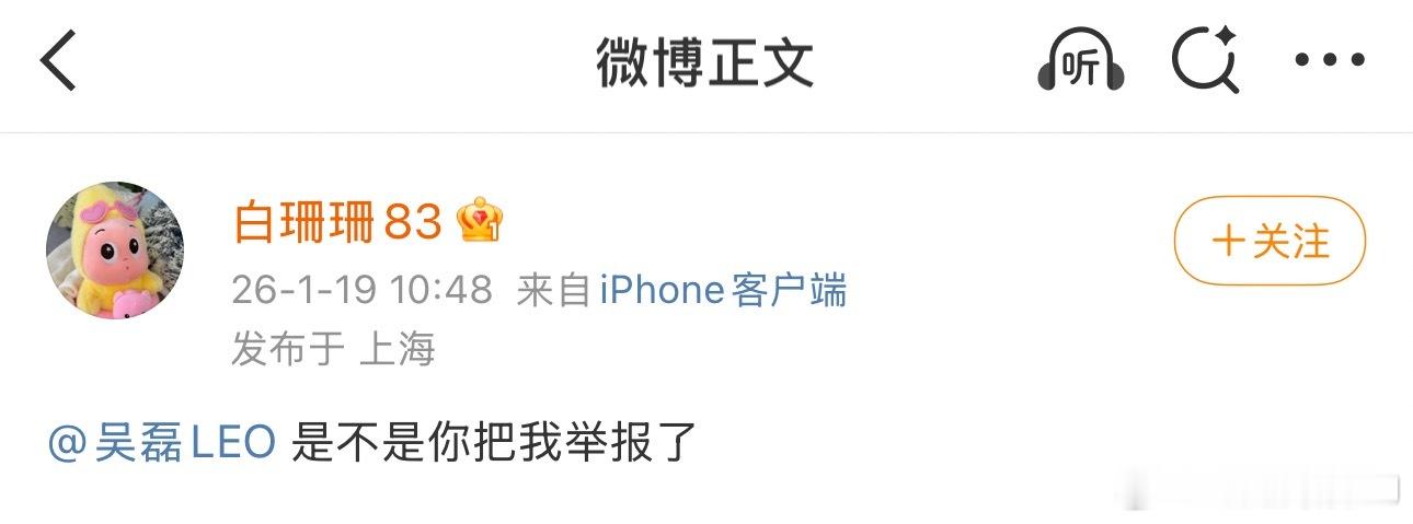 白珊珊微博被炸号,她用小号白珊珊83直接艾特了吴磊,问是不是吴磊实名举报了。吴磊刚刚直接发微博回应,“不认识,已委托律师依法追责”,工作室转评文案补充是“素不相识,无任何交集!” 吴磊 不认识