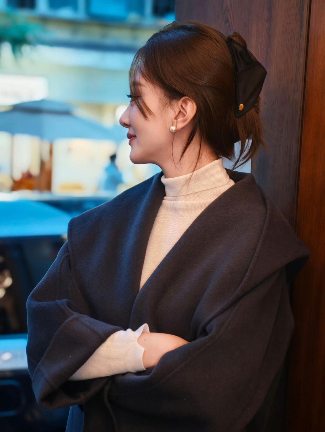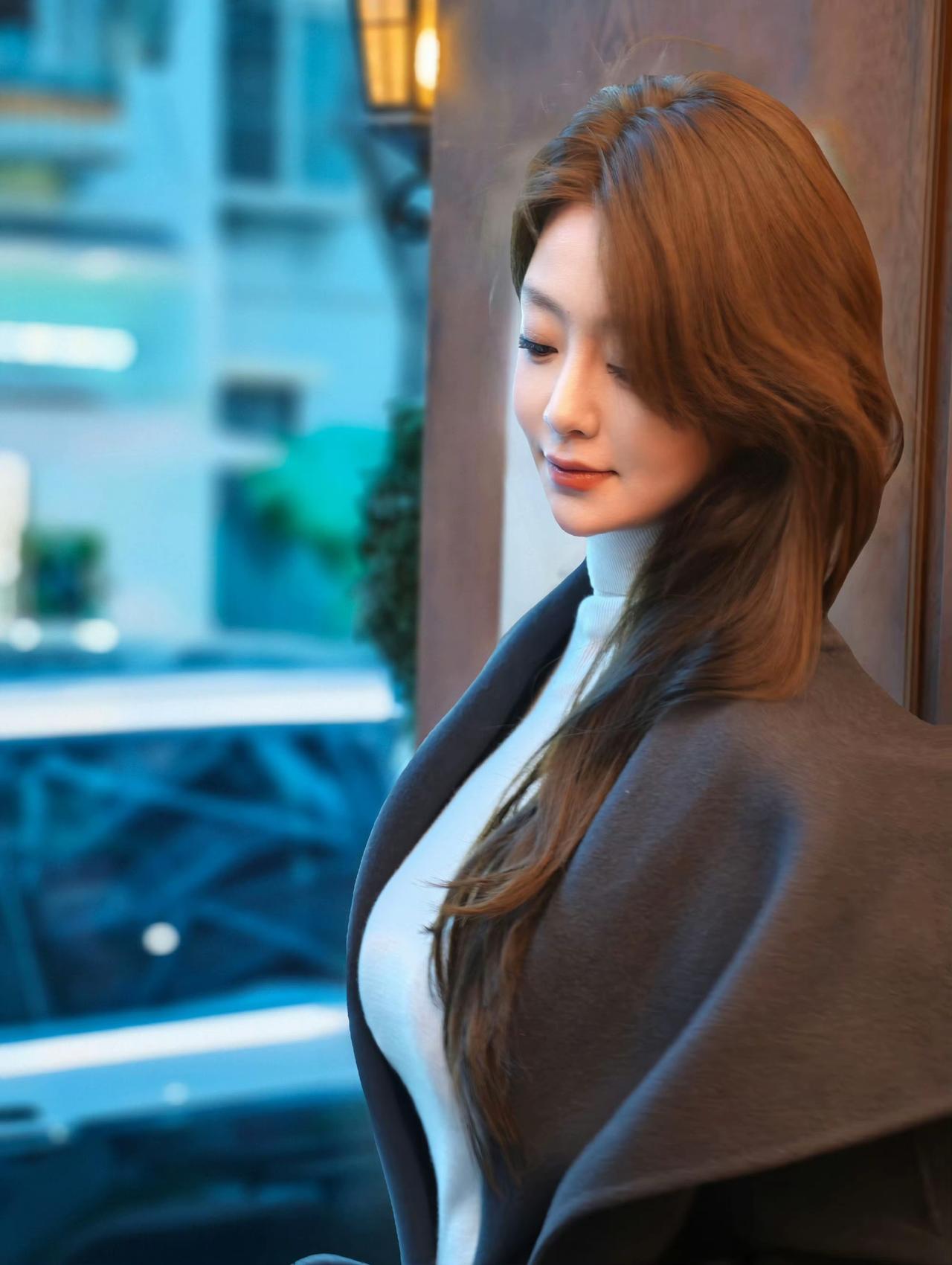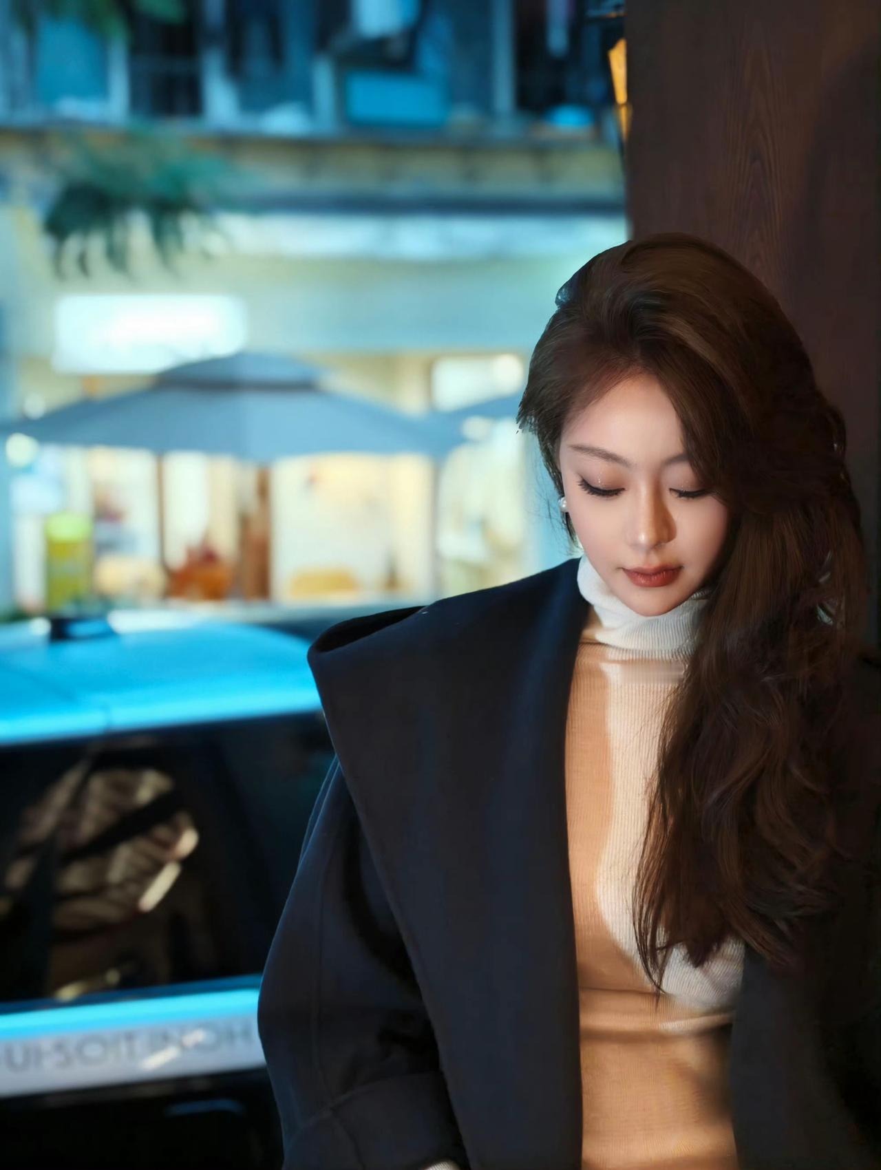 夜色笼罩,美人倚栏。