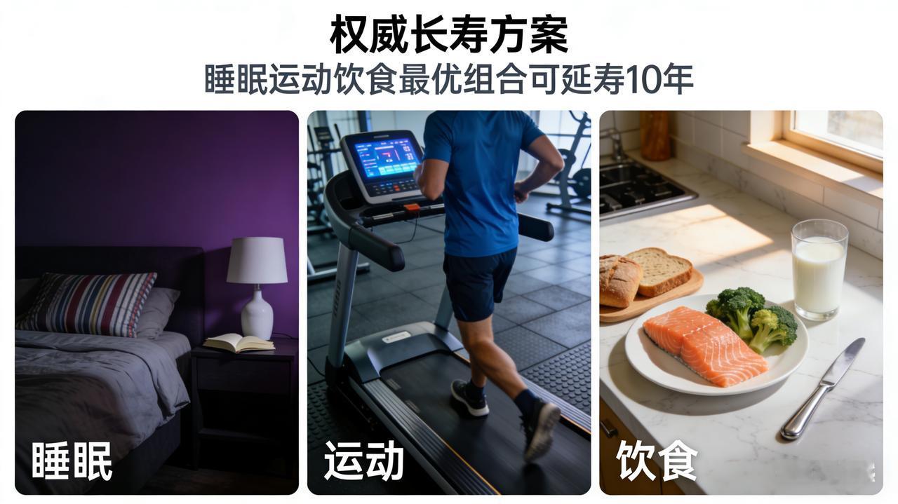 权威长寿方案:睡眠运动饮食最优组合可延寿10年 【重磅】近6万人验证的“长寿