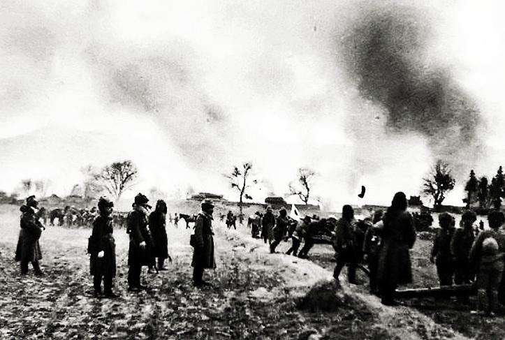 地处沂蒙山区的临朐县,境内山明水秀,土地肥沃,人民勤劳善良。1938年日寇侵占临朐后,其铁蹄践踏之处,罪行累累,血迹斑斑。 1940年到1943年间,由于日寇烧杀掳掠,再加上伪顽反动势力的摧残和封建地主阶级的盘剥,使临朐人民陷于水深火热之中。据不完全统计,仅3年时间,全县就有168000多人逃荒要饭,14000多人典妻卖子,骨肉分离,被日、伪、顽杀害及冻饿而死的就有100000多人。全县380000多人口最后只剩下80000人。 仅据九山区的统计,1942年,惨遭杀害、背井离乡、逃荒要饭、病饿而死的就有11404人,占该区总人口的90%以上。该区夏庄村110户共500人,最后只剩下7户27人,活着的不足6%。 临朐成了骇人听闻的“无人区”,呈现一片“土地全荒芜,街院蓬蒿生,人死无人埋,屋里抱狼羔,有路无人走,夜间野狼嚎”的悲惨景象。 日寇侵华,在临朐的暴行桩桩件件,罄竹难书!
