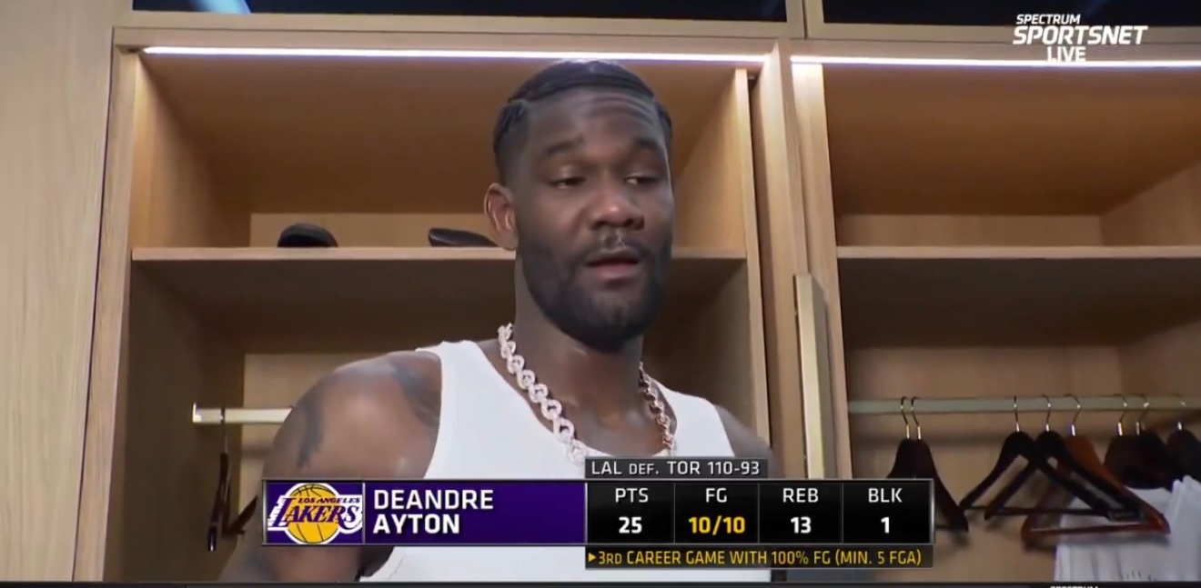 艾顿谈他今天10中10拿到25分13篮板:“我喜欢像今天这样的比赛,希望以后多来点。”