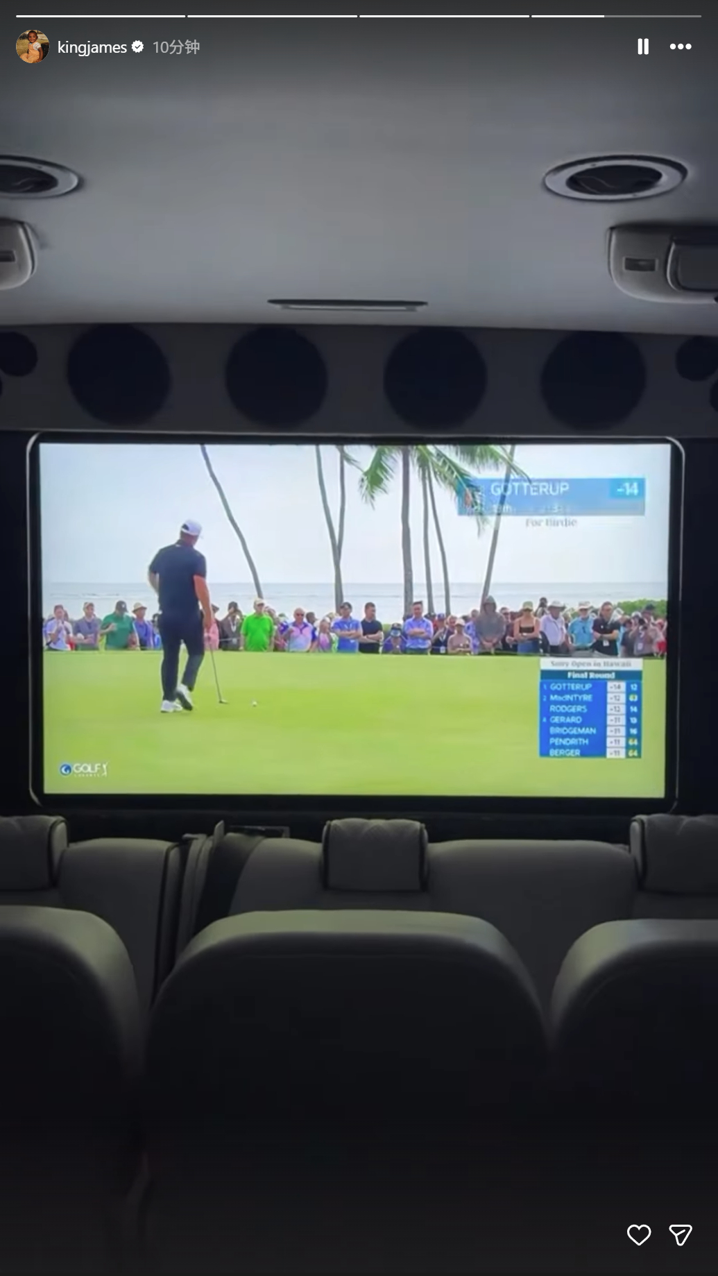 比赛结束后没多久,詹姆斯已经开始看高尔夫视频了