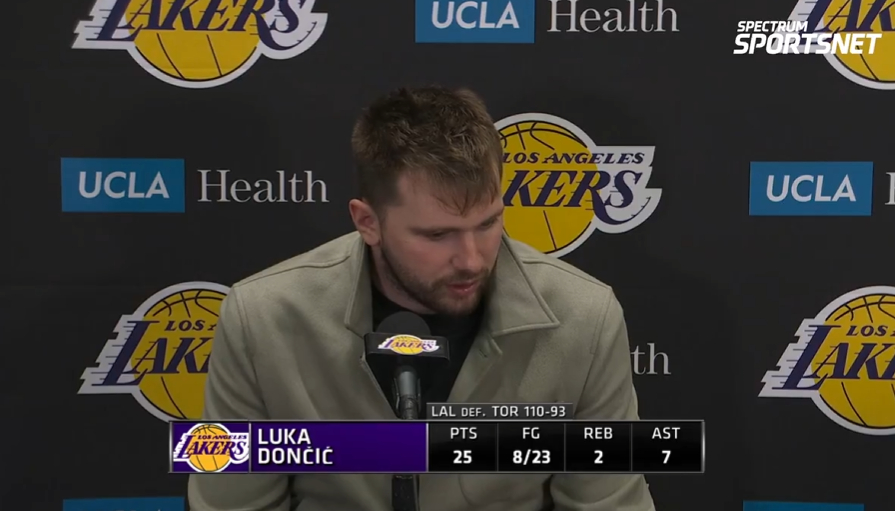东契奇赛后点评湖人现在25胜16负的战绩:“显然这个战绩不算很差,但我们本可以更