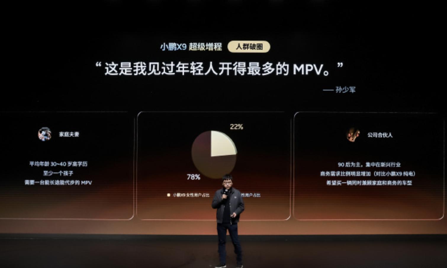 小鹏X9那个用户画像出来,还挺有意思的~ 里面提到几个关键信息,比如现在有更多年轻用户,甚至宝妈都愿意开这种大车了。咱们也不妨回头想想,MPV到底是啥样的车?核心用户又是谁、有啥特征呢?我对MPV的理解是,MPV很能反映出父母在养育孩子、家庭决策上的思想转变。我周围有娃的朋友,不管是一个还是两个娃,都有个共同感受:一是想给孩子更多空间,不想太多约束;但另一方面,也会受媒体、身边人影响。现在的年轻父母挺有责任心的,也在主动探索、改变养育方式。这和MPV有啥关系呢?我觉得上一辈父母选车,更多是为了“面子”。他们那个年代变化太大了,五年十年就能天翻地覆,要想让人看到自己的变化,就得靠车子这种显眼的东西撑场面,像大型MPV这种能撑面子的,他们就很喜欢,至于车内实际体验反而不太在意。但现在的父母不一样了——从小生活稳定,没经历过啥动荡,更专注于生活本身,想提高自己的生活质量,而不是活在别人眼里。这时候MPV就刚好契合了这种家庭观念的变化。再说说车子的特质,其实很简单:现在的用户超在意驾乘体验,不管是谁坐车,真实感受都很重要,连驾驶者的体验也不会忽视,开着得有乐趣、够便捷。所以MPV的变化,本质就是家庭思维的转变最直观的体现,小鹏X9超级增程应该就是抓准了这种变化才受欢迎的~小鹏X9年轻家庭的第一台MPV小鹏X9超级增程首个用户画像报告发布