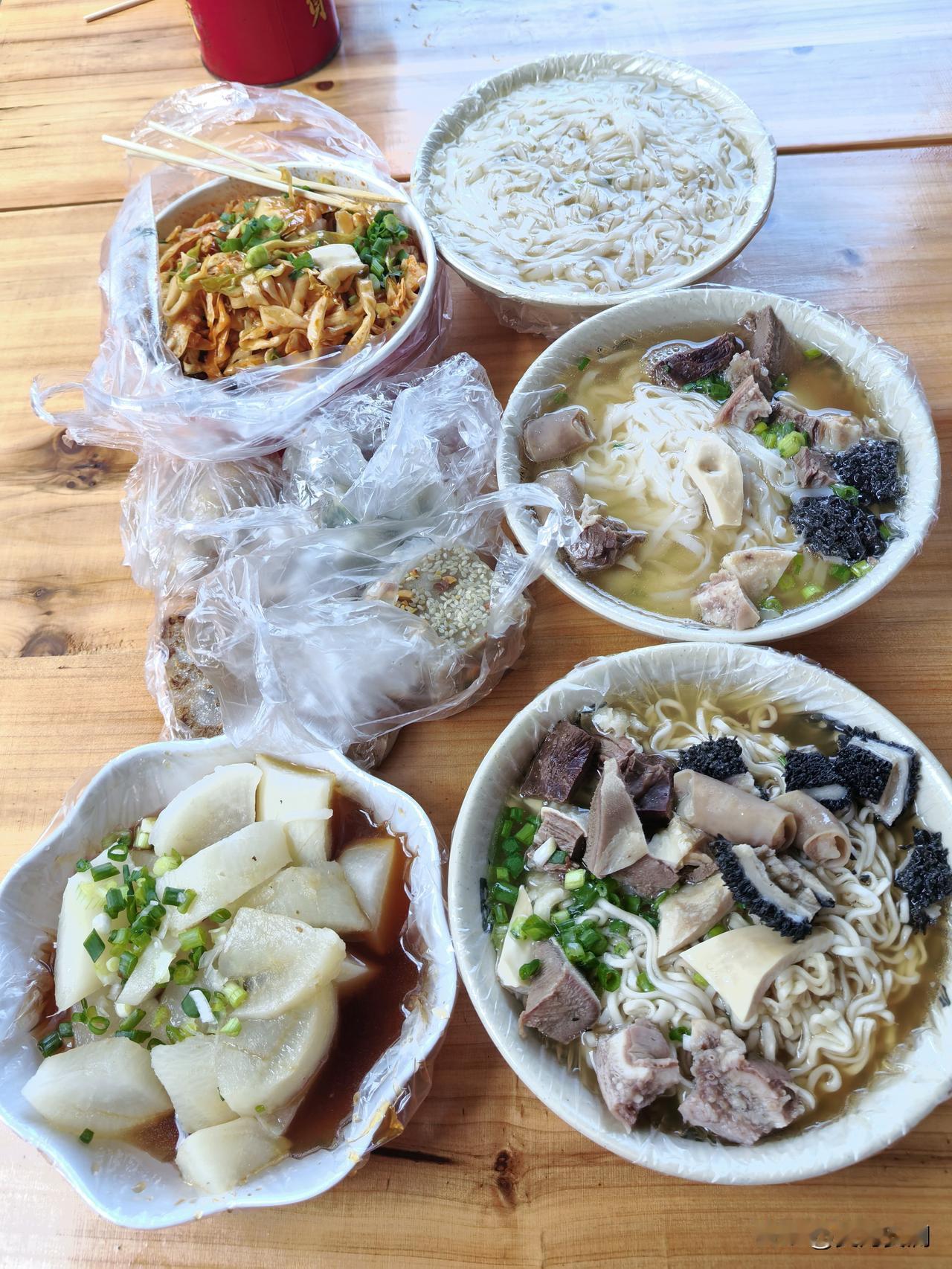 途径化州时,我专门去打卡了老字号《海洋牛腩档》。我点了牛杂粉、斋河粉、牛腩面,还搭配了白萝卜。牛杂粉里的牛腩是现剪的,口感和剁的大不一样,筋道且鲜香。我按照当地吃法,加了辣油、葱花和芝麻油,香味一下子就提升了,香而不燥,一点也不腻。 白萝卜吸满了汤汁,清甜又入味。我还外带了乳汁臭豆腐,它闻着臭吃着香,芋头糕、芋头饼和菜粿也都各有风味。化州这座小城物价实惠,美食众多,这次途径让我颇为满意!