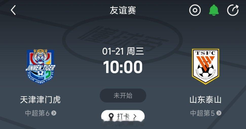 泰山队将在1月21日与天津津门虎进行热身赛。自由橙山东泰山