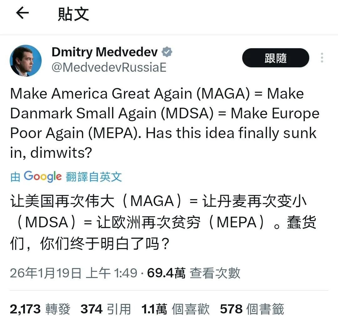 姐夫和税宗一样能整活儿啊。以前怎么没有发现呢?[偷笑] 如果现在不是大帝,而是姐夫和税宗直接对线,这画面太美我不敢看。[笑哭] 税宗作为一个商人实在太优秀。在如何得到格陵兰岛这个问题上,他想到了一条妙计。 羊毛出在猪身上。 买格陵兰岛的钱由欧猪新八国联军买单。 既然你们不同意,那你们就给我交关税,直到你们同意的那一天为止。 [赞]点赞!厉害! 果然是MAGA就是让丹麦变更小、让欧洲变更穷! 姐夫一眼就看出来啦。 有眼光!厉害![赞] 点右上角关注我,我们一起去看这个魔幻的世界