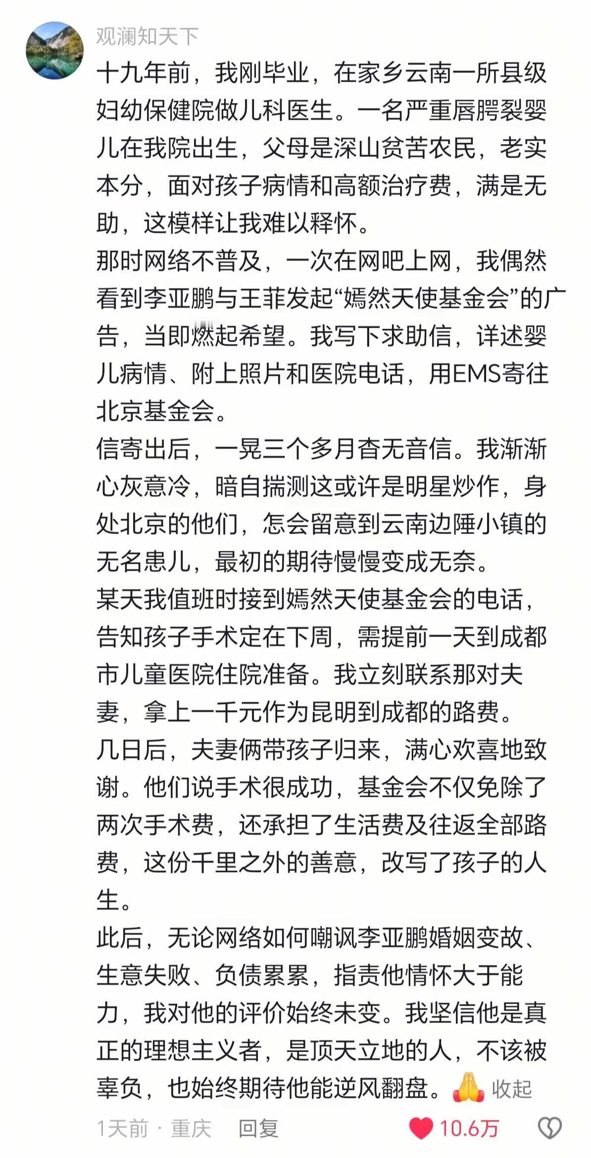 云南一所县级妇幼保健院的儿科大夫,讲述他十九年前与“嫣然天使基金会”的交往全过程!