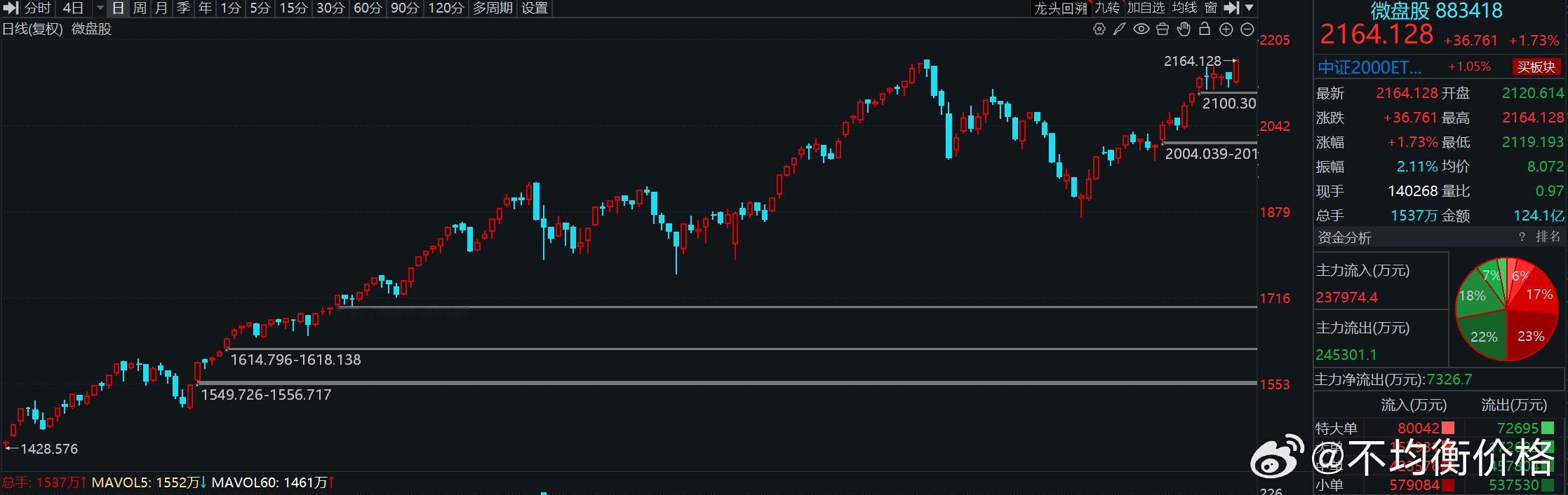 不注意看还真没发现,今天微盘股指数又新高了。但这次微盘股指数新高晚于其他主要股指,也比A股平均股价指数更弱。大盘价值指数走的比较特殊,权重都被拿来压指数了。a股