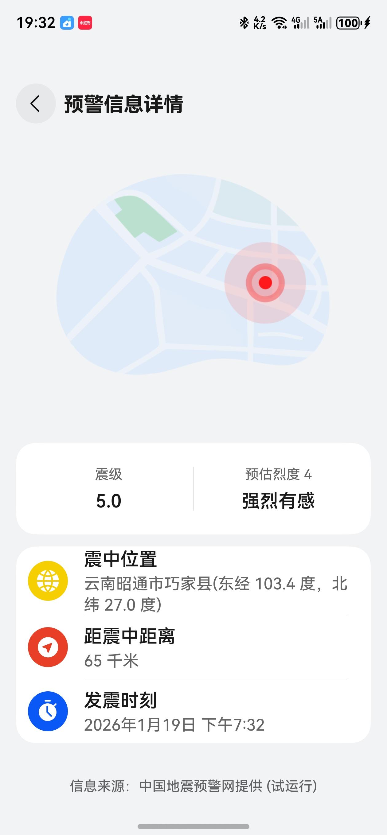 就在刚才,手机突然收到地震预警了,电视14秒倒计时啊,云南昭通市巧家县5.0级地