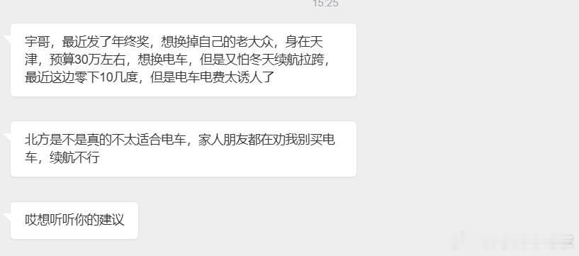 总有粉丝私信我,让我给他点购车建议,其中90%都是首推新能源,其中不少还是北方的朋友,有人说北方不适合电车,我反而认为更适合,总有人担心北方冬天电车续航打折,但想想:现在主流车型续航都600km+,说极端点零下20度打五折,还能跑300km。可一年能有几天零下20度?除了东北部分地区,绝大多数北方城市不到10天。剩下的300多天敬请享受电车带来的智能、从容不香吗?再说充电,全国充电桩已近2000万个,公共充电桩约500万个,一线城市平均每公里超过5个,足够用了吧,为什么说北方更适合买电车,出门前手机远程开启空调、座椅加热,上车就是暖的。油车也能预热,但电车成本低啊,舍得天天用才是真享受啊......大v聊车