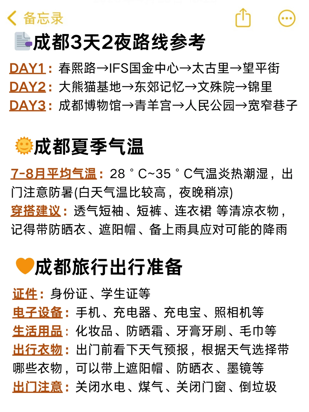 🌈成都三天两晚路线参考