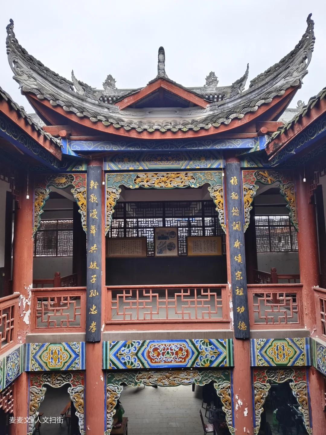 华夏宗祠,位于重庆市渝北区龙兴古镇祠堂街32号,原为“贺氏宗祠”,始建于清道光年间。2003年,贺氏宗祠被改建为华夏宗祠,成为西南地区唯一一个以姓氏文化为主题的寻根问祖大祠堂。祠堂建筑面积约1500平方米,采用典型的三厅两堂式结构。内部供奉有172个姓氏的渊源石碑,还收藏了200余部族谱和50多个姓氏家谱。其戏楼雕梁画栋,做工精细,人物花草图案经数百年仍基本完好。